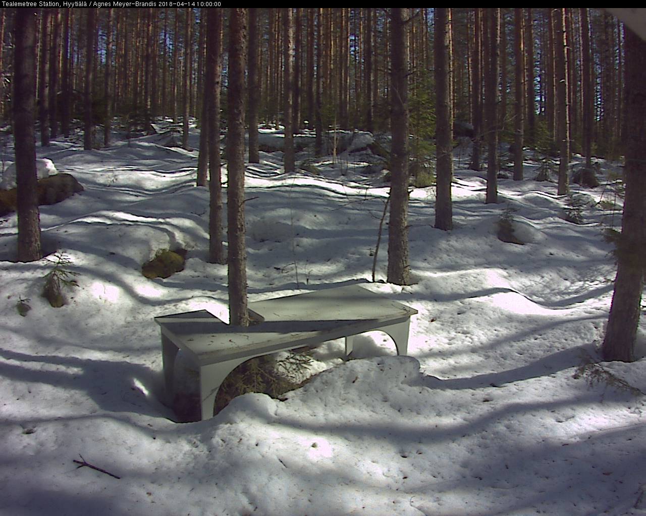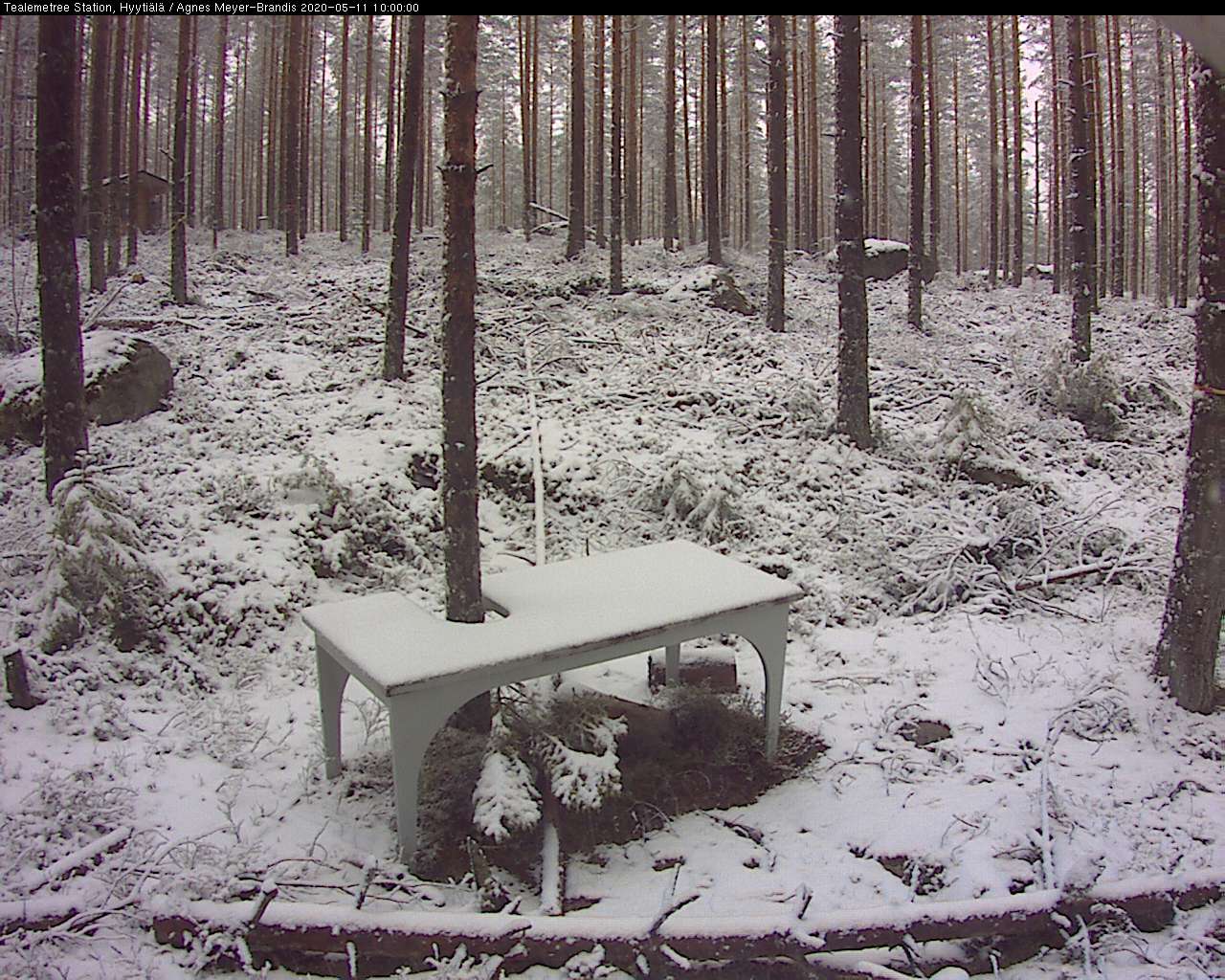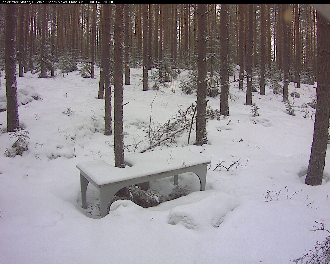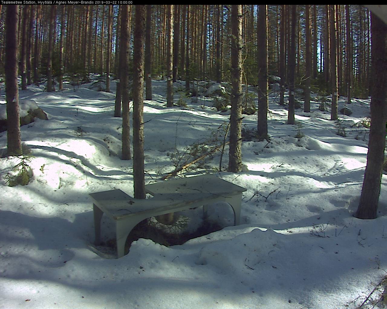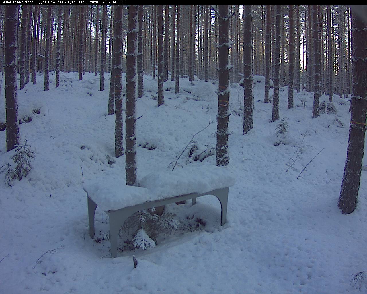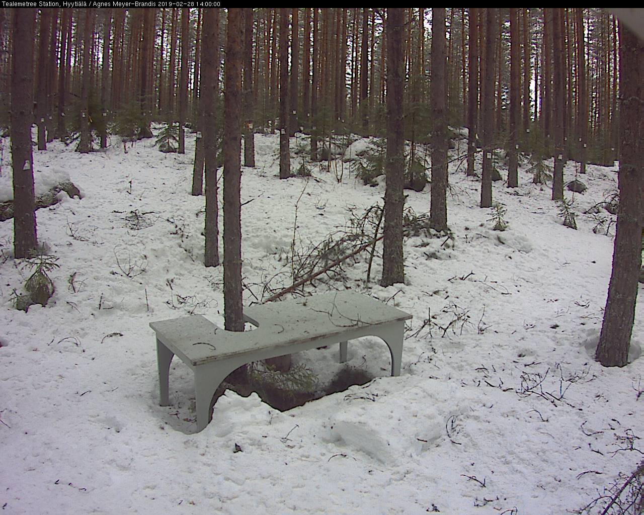 Agnes Meyer-Brandiksen työ Hyytiälässä alkoi tutustumalla aseman muihin tutkijoihin. Pystyäkseen tapaamaan ihmisiä metsässä, hän rakensi pöydän, josta muodostui kohtauspiste ja paikka teehetkille Agneksen ja puun kanssa.