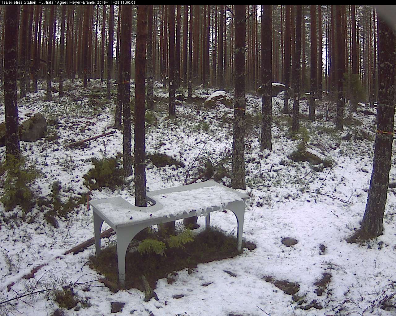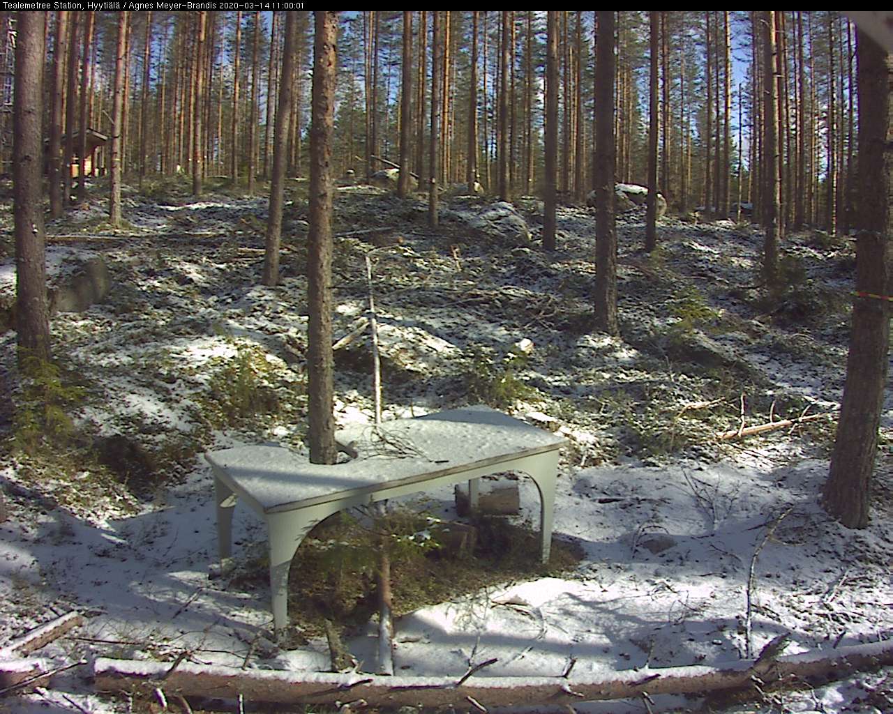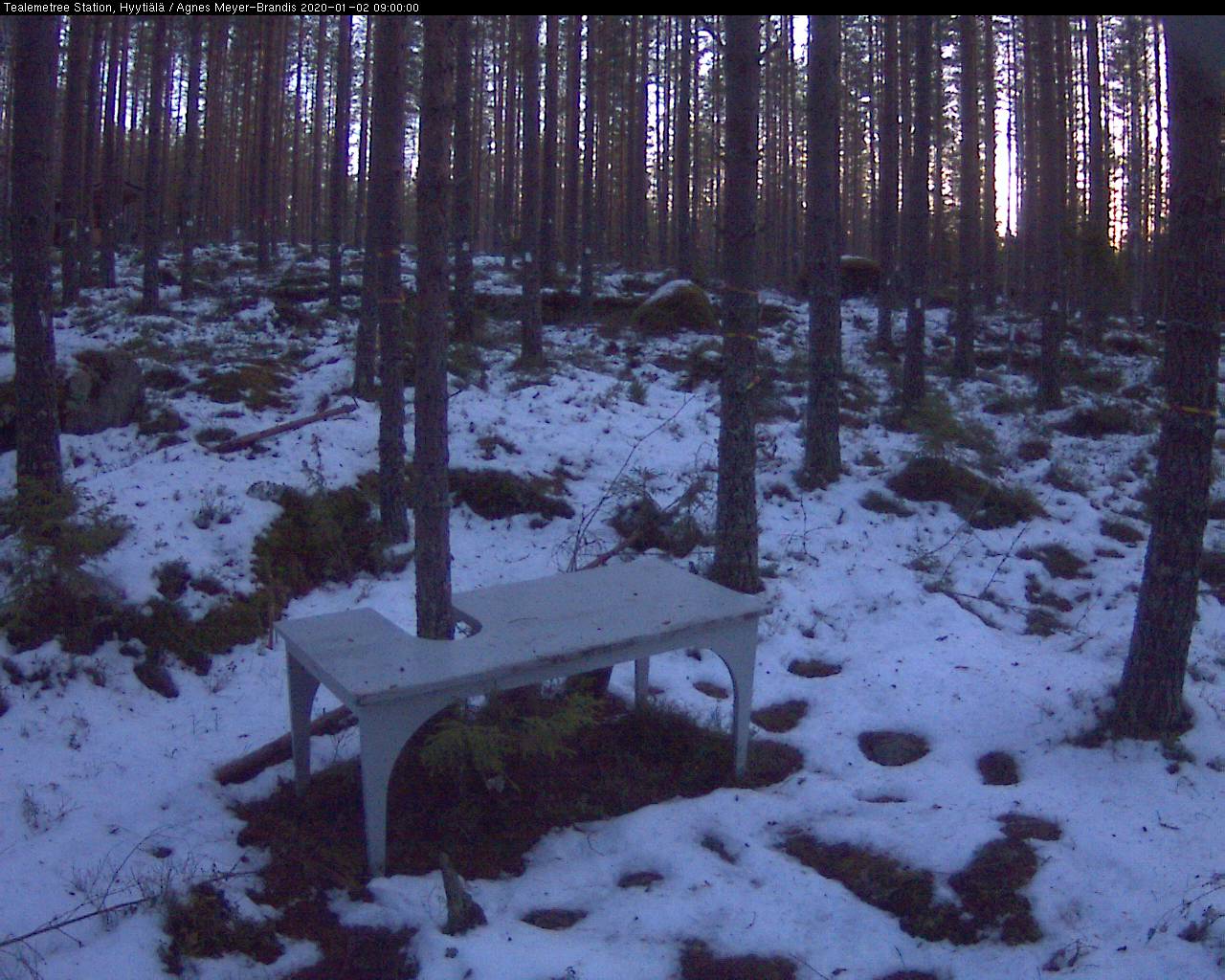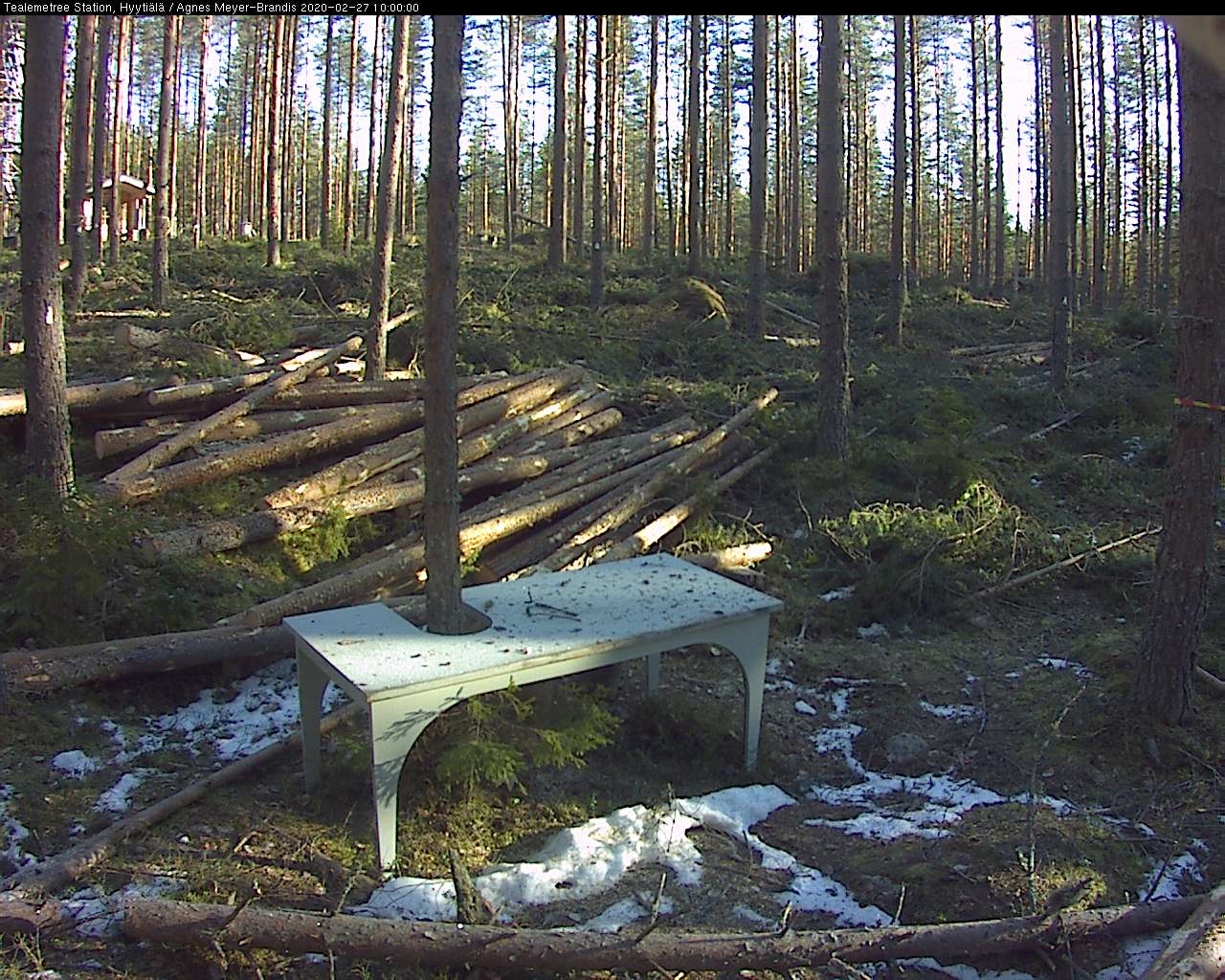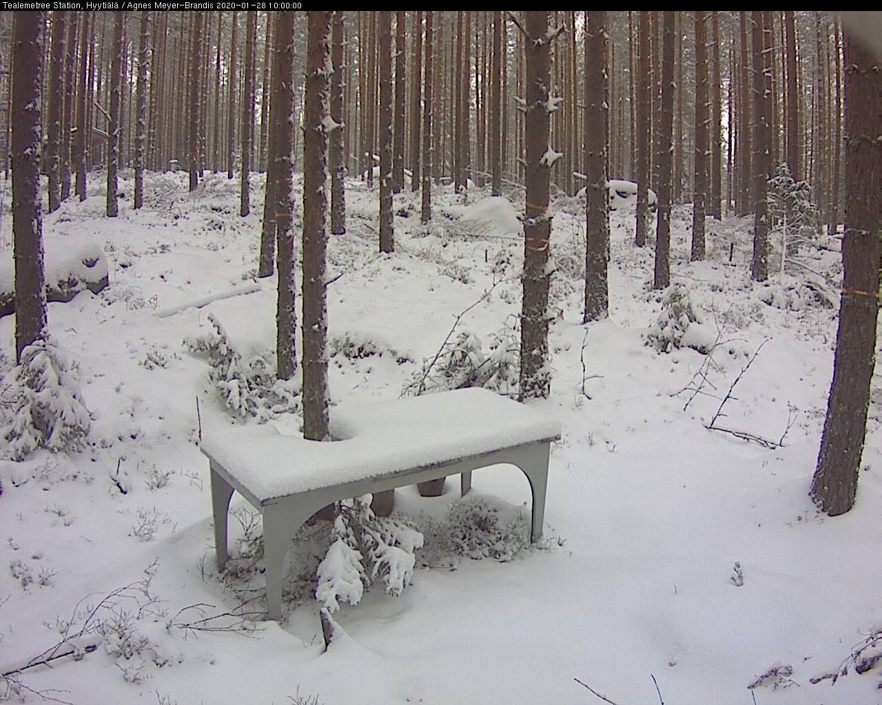 Agnes Meyer-Brandiksen työ Hyytiälässä alkoi tutustumalla aseman muihin tutkijoihin. Pystyäkseen tapaamaan ihmisiä metsässä, hän rakensi pöydän, josta muodostui kohtauspiste ja paikka teehetkille Agneksen ja puun kanssa.