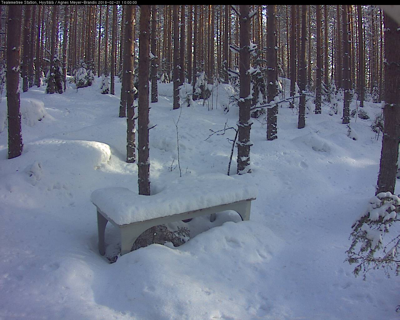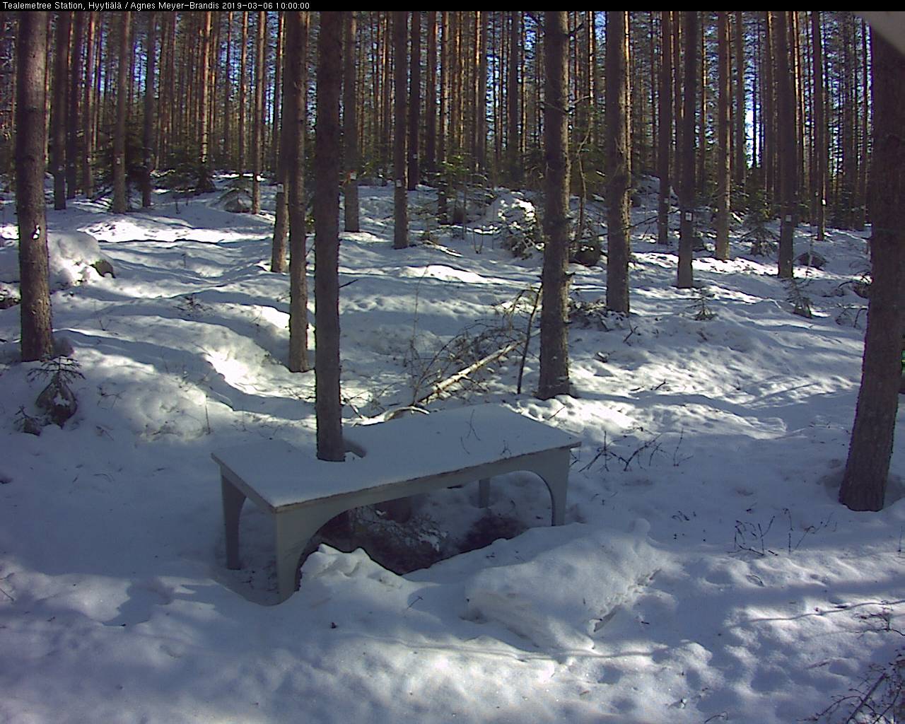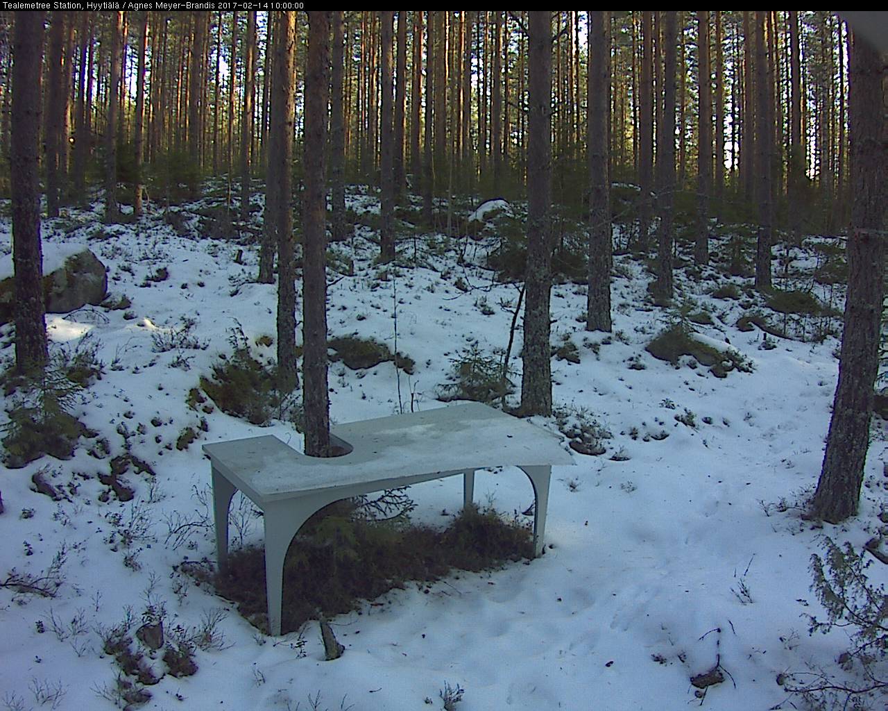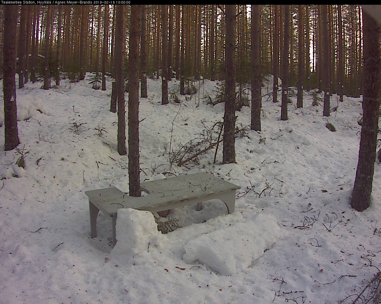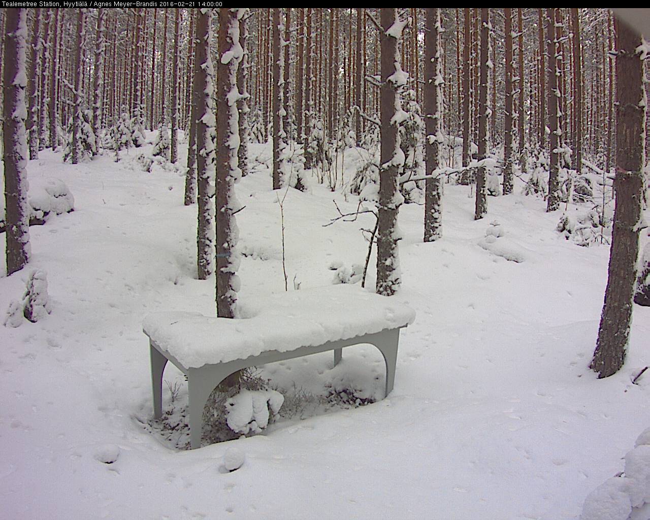 Agnes Meyer-Brandiksen työ Hyytiälässä alkoi tutustumalla aseman muihin tutkijoihin. Pystyäkseen tapaamaan ihmisiä metsässä, hän rakensi pöydän, josta muodostui kohtauspiste ja paikka teehetkille Agneksen ja puun kanssa.