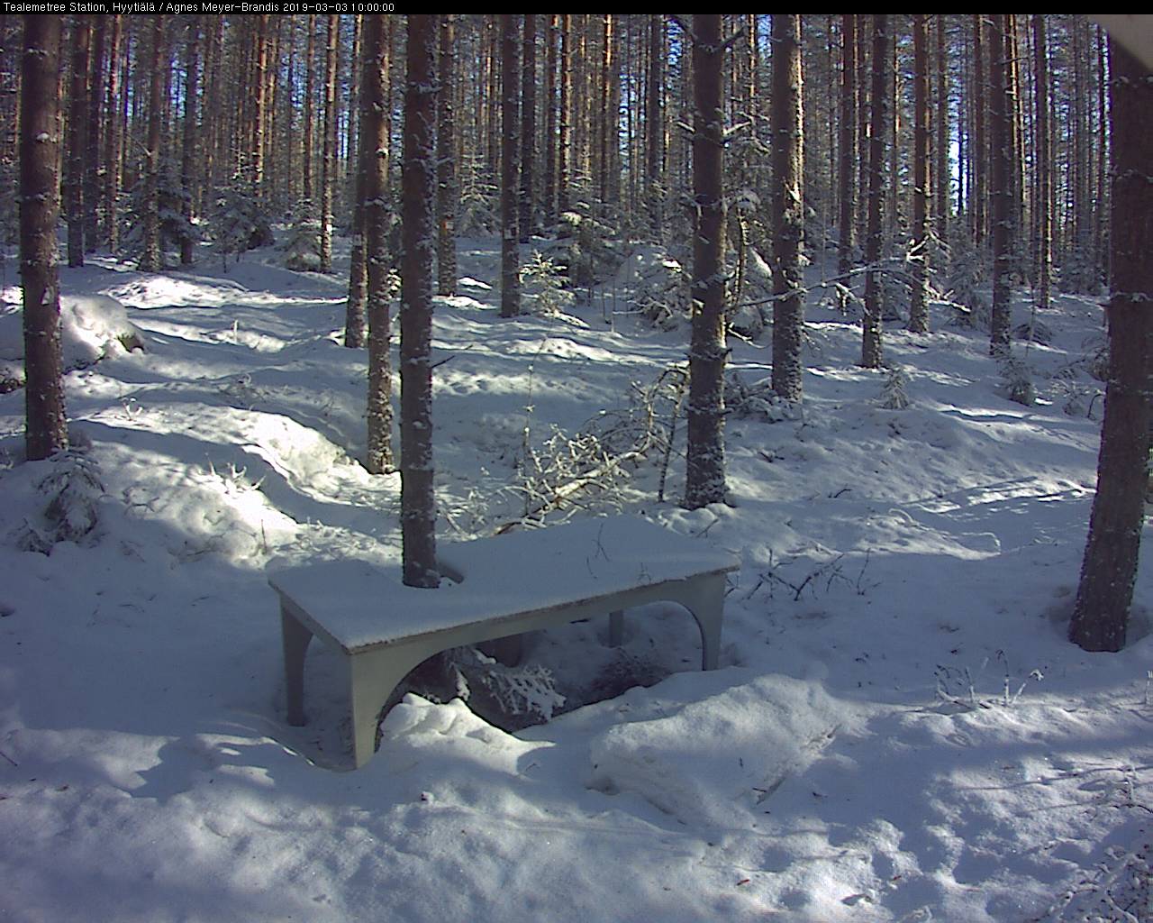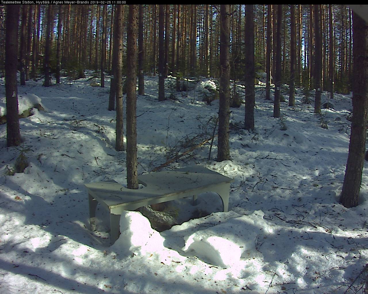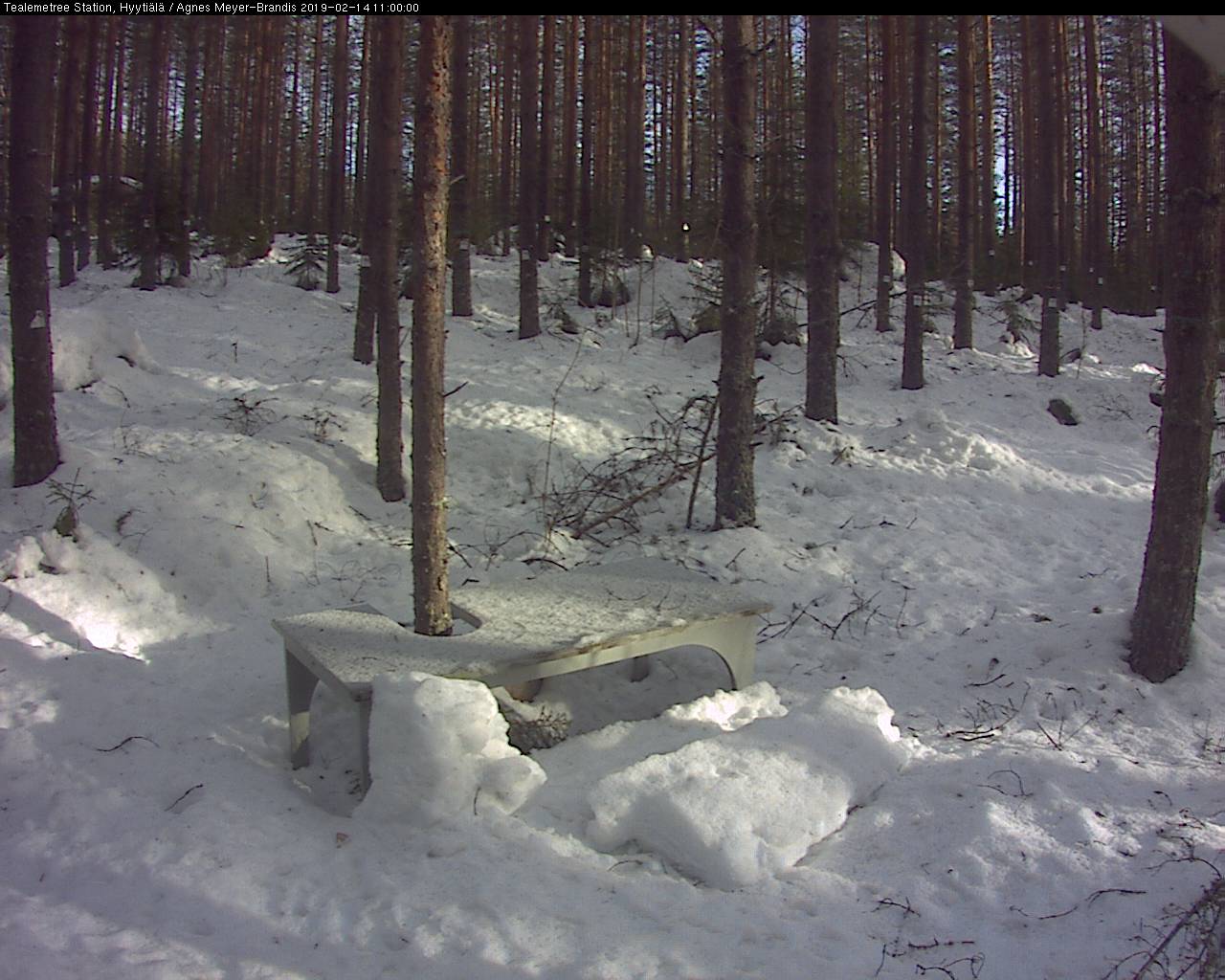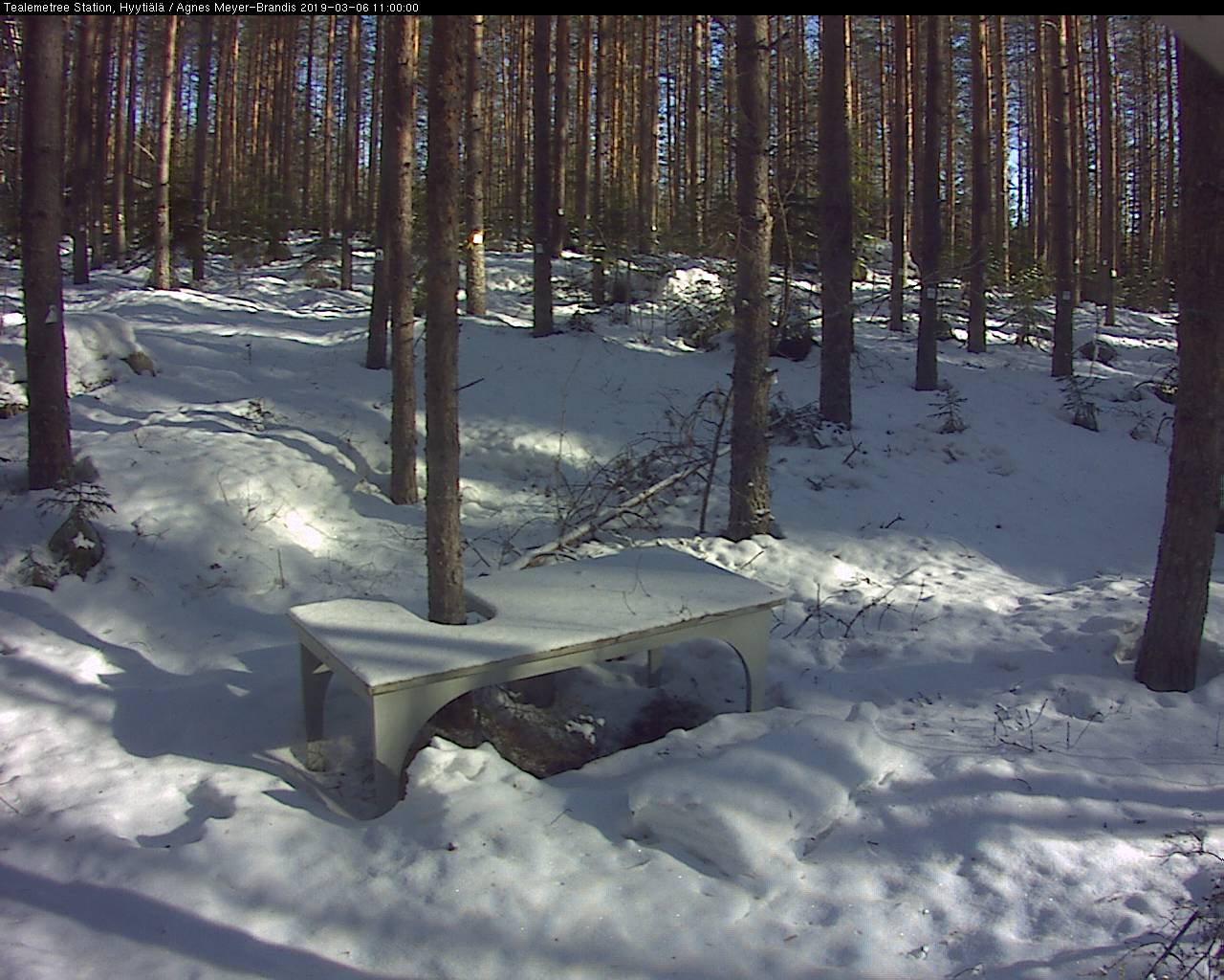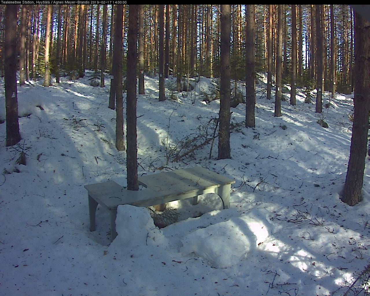 Agnes Meyer-Brandiksen työ Hyytiälässä alkoi tutustumalla aseman muihin tutkijoihin. Pystyäkseen tapaamaan ihmisiä metsässä, hän rakensi pöydän, josta muodostui kohtauspiste ja paikka teehetkille Agneksen ja puun kanssa.