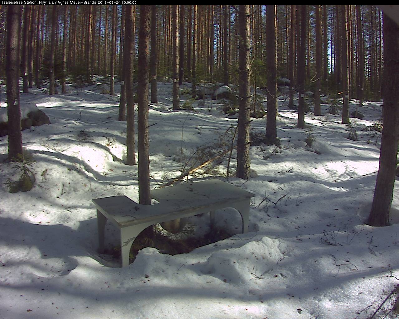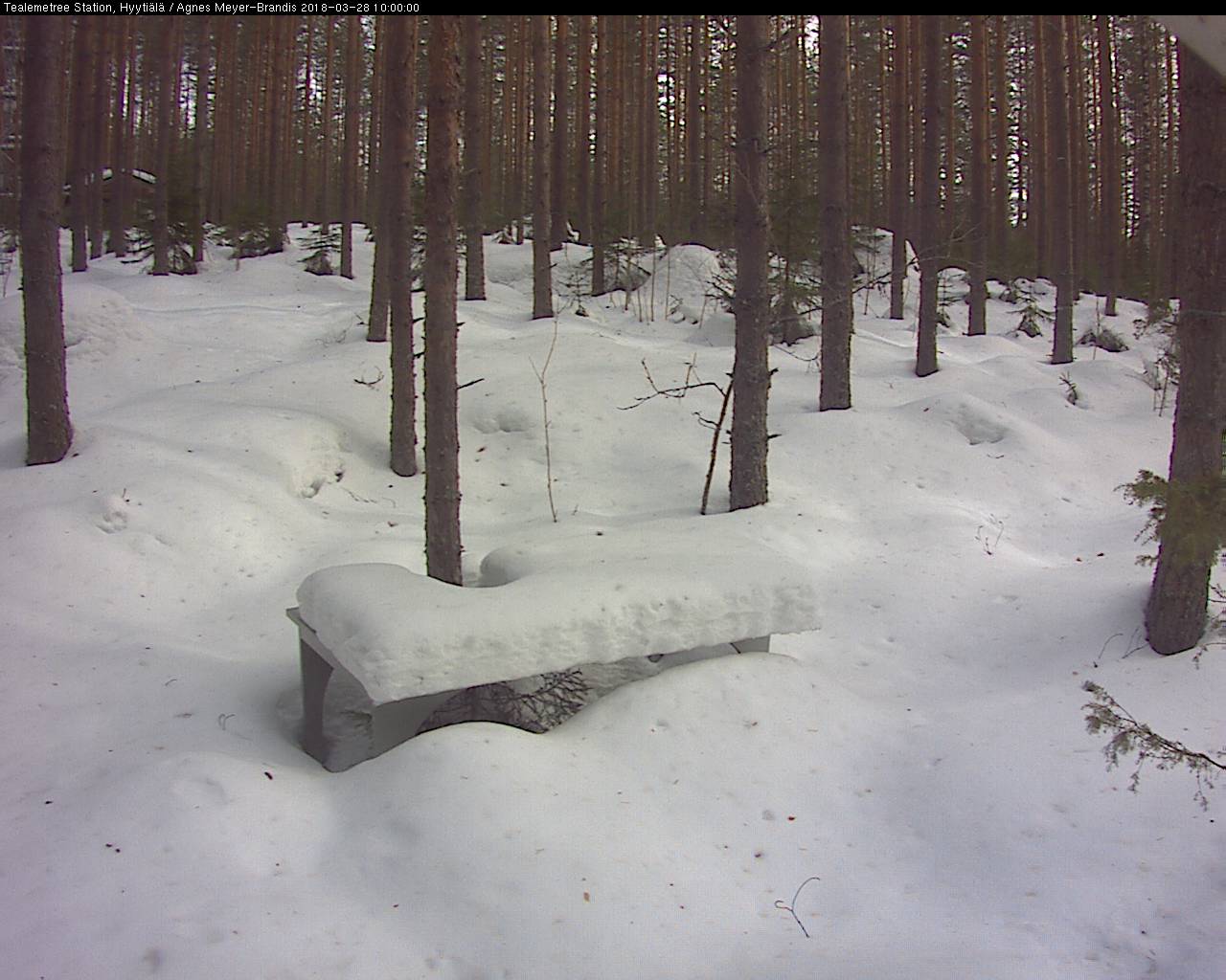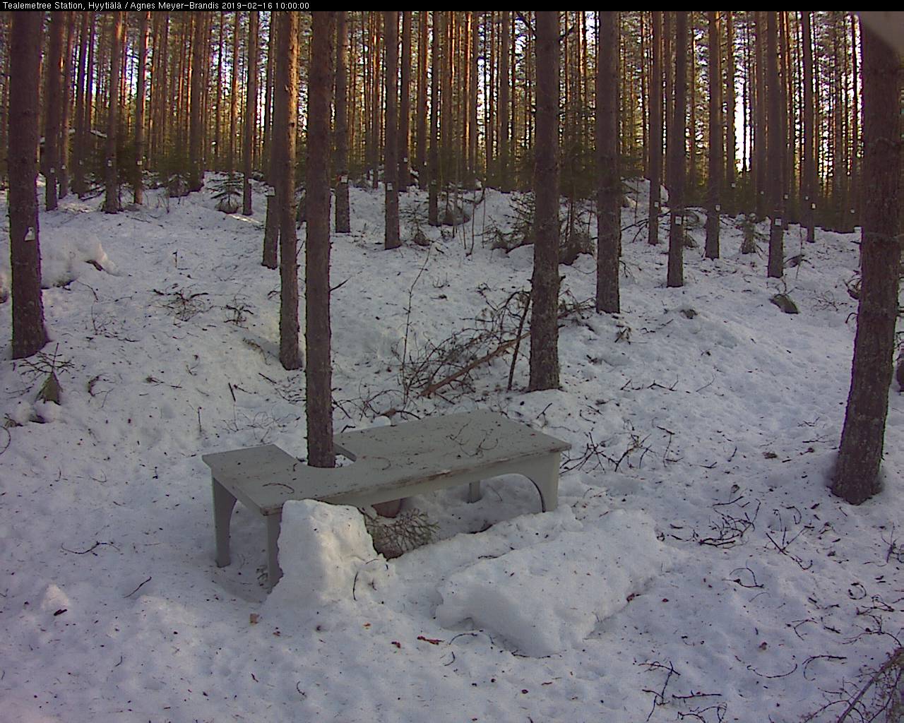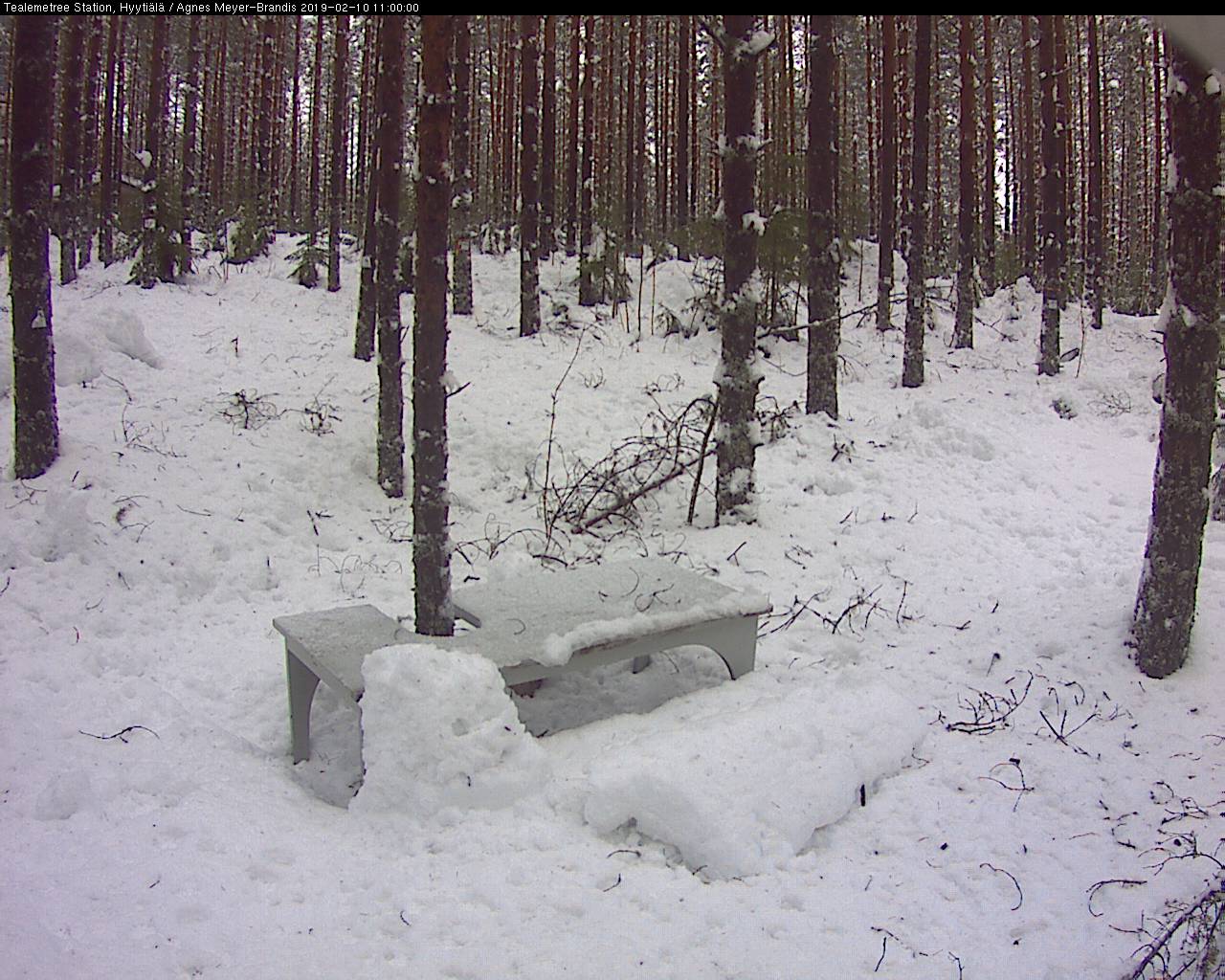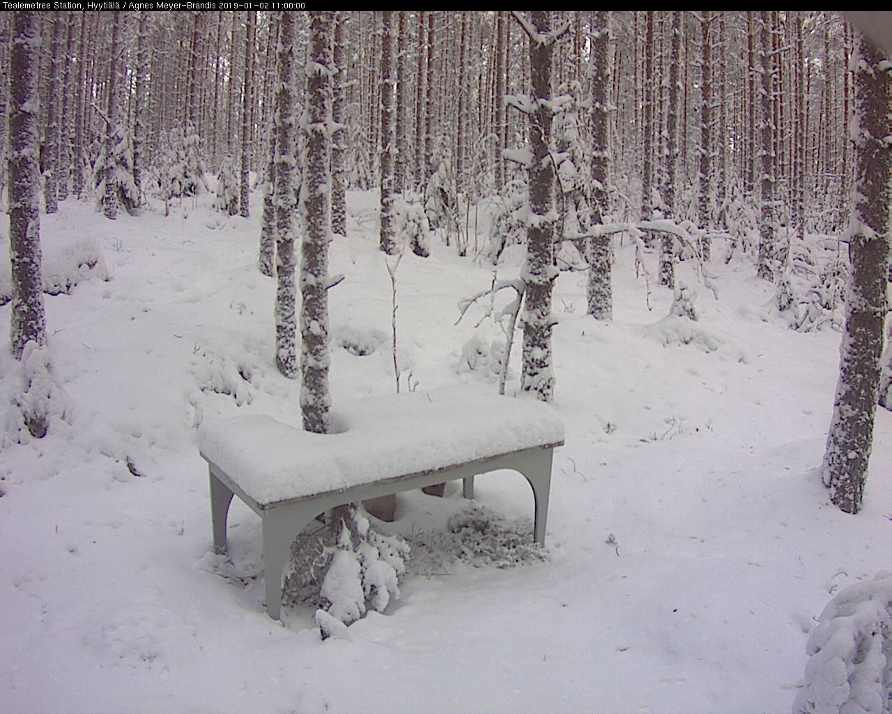 Agnes Meyer-Brandiksen työ Hyytiälässä alkoi tutustumalla aseman muihin tutkijoihin. Pystyäkseen tapaamaan ihmisiä metsässä, hän rakensi pöydän, josta muodostui kohtauspiste ja paikka teehetkille Agneksen ja puun kanssa.