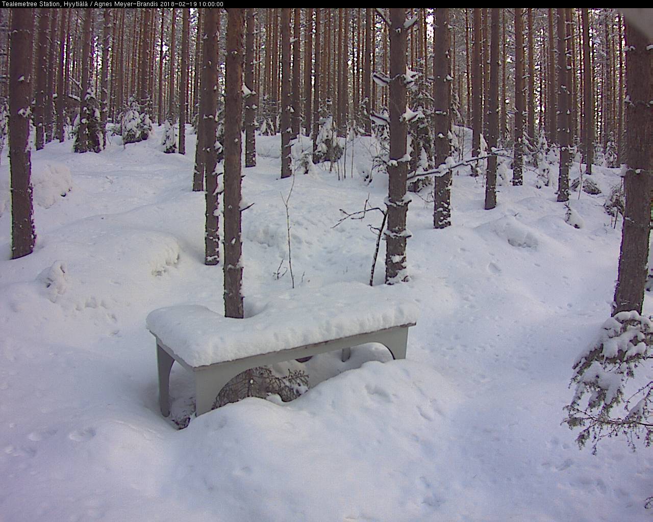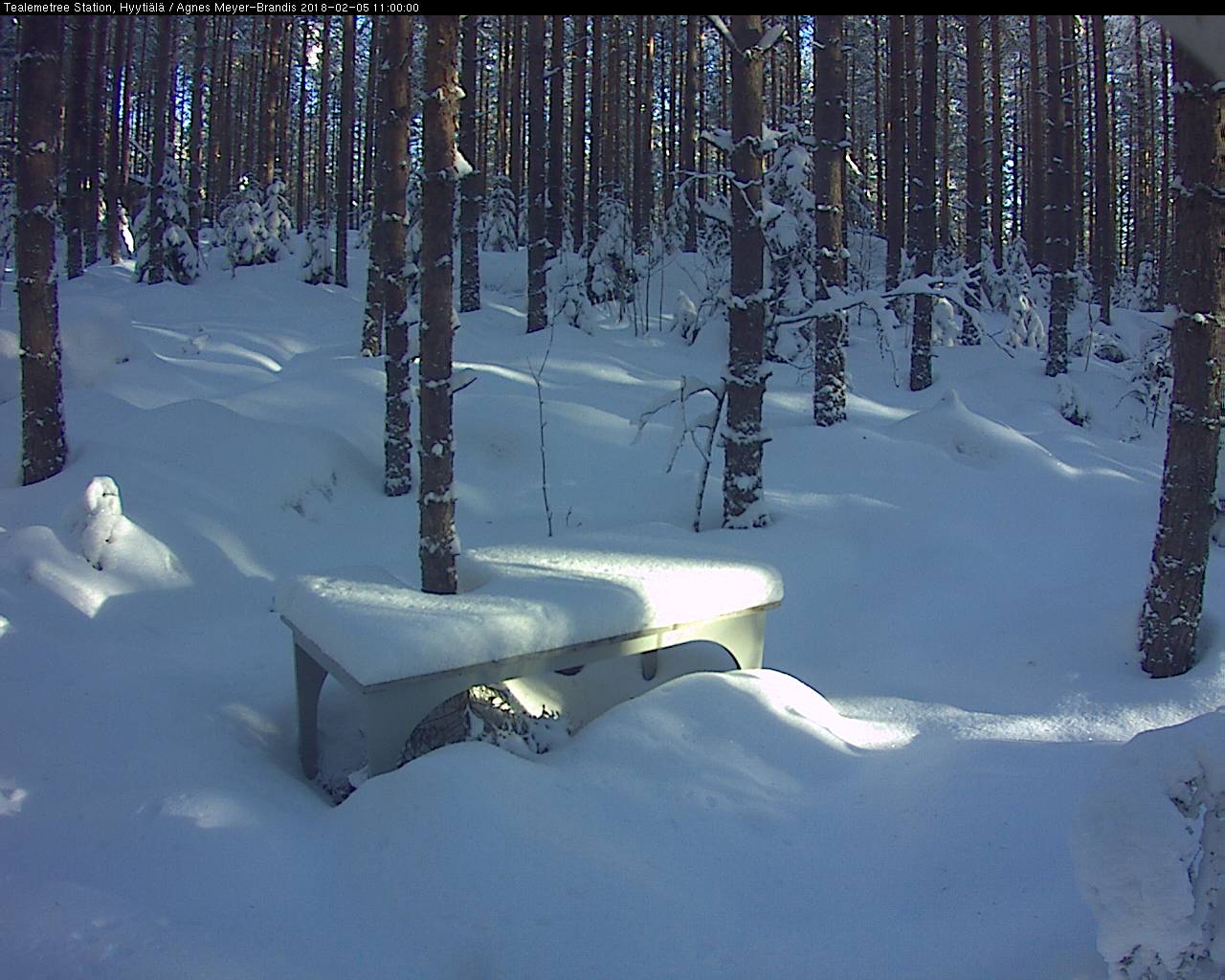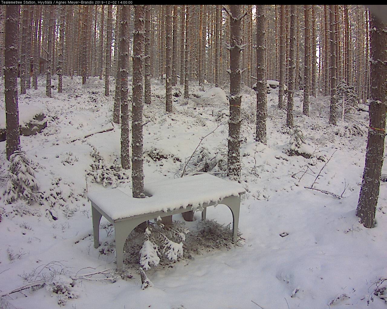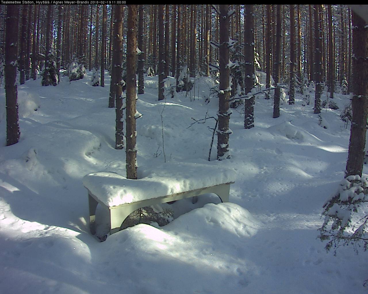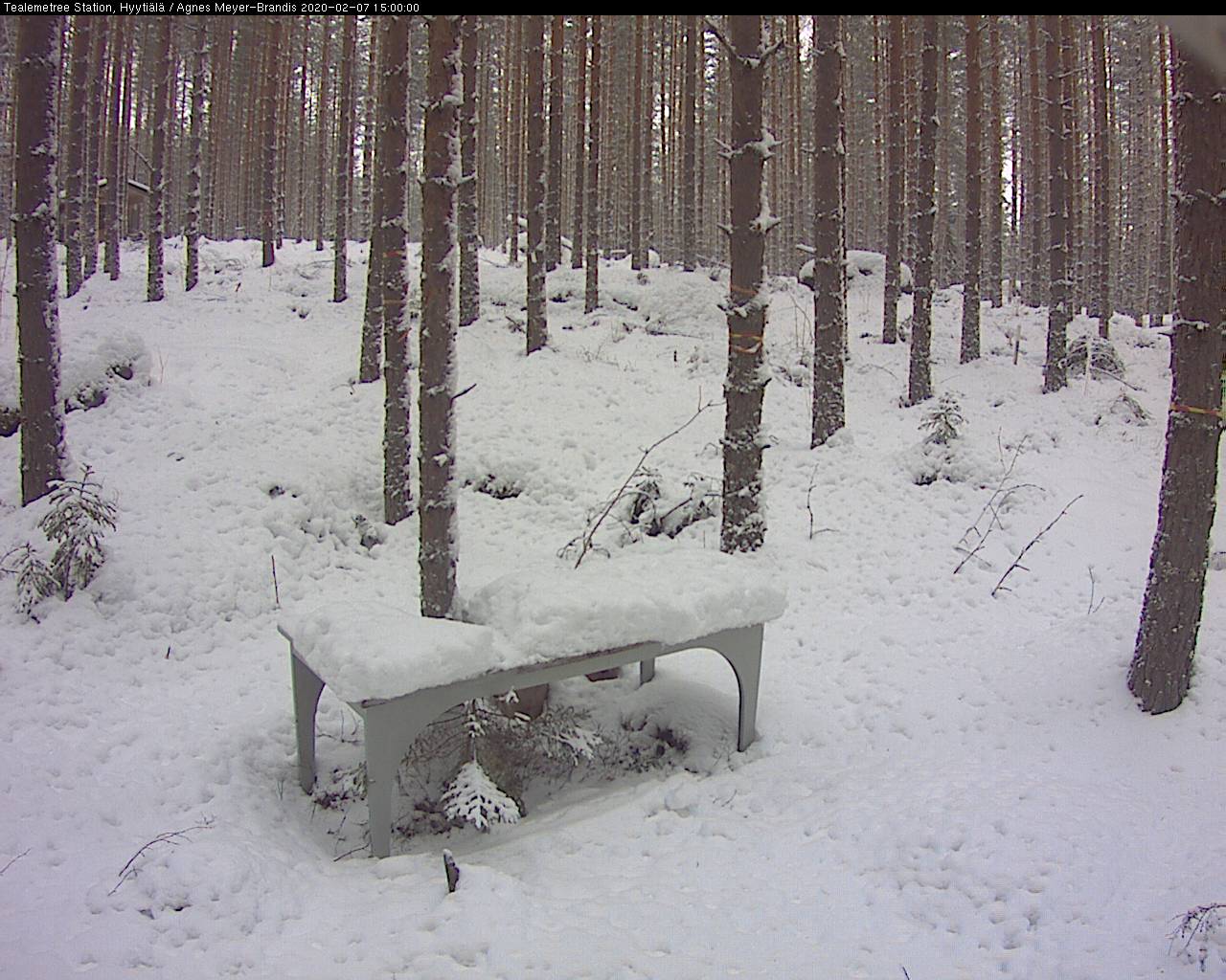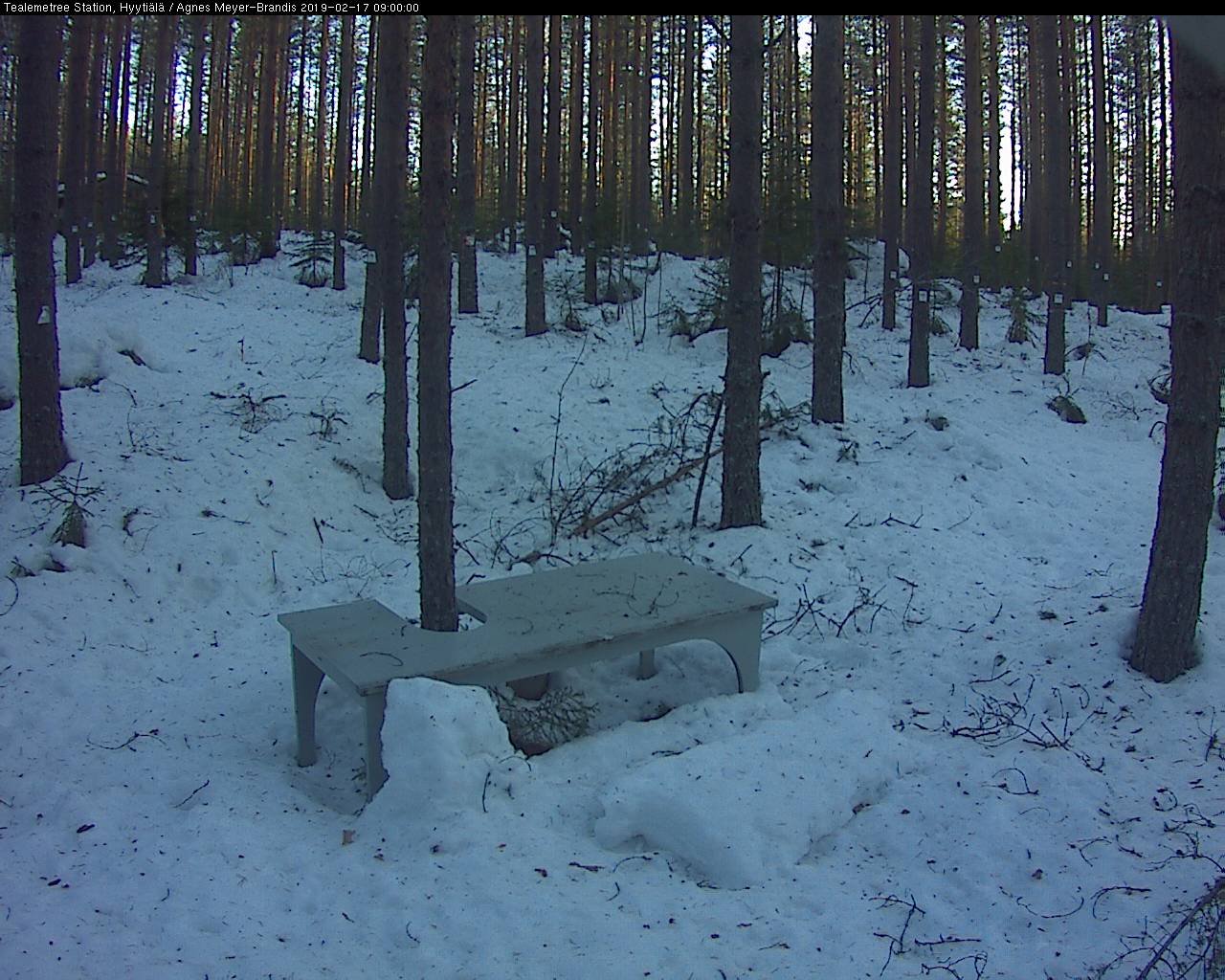 Agnes Meyer-Brandiksen työ Hyytiälässä alkoi tutustumalla aseman muihin tutkijoihin. Pystyäkseen tapaamaan ihmisiä metsässä, hän rakensi pöydän, josta muodostui kohtauspiste ja paikka teehetkille Agneksen ja puun kanssa.
