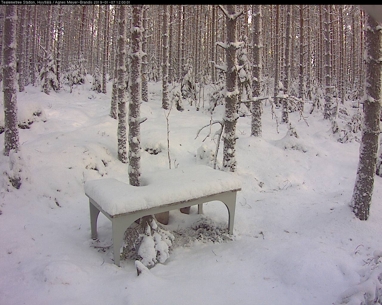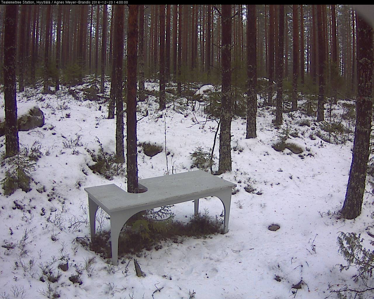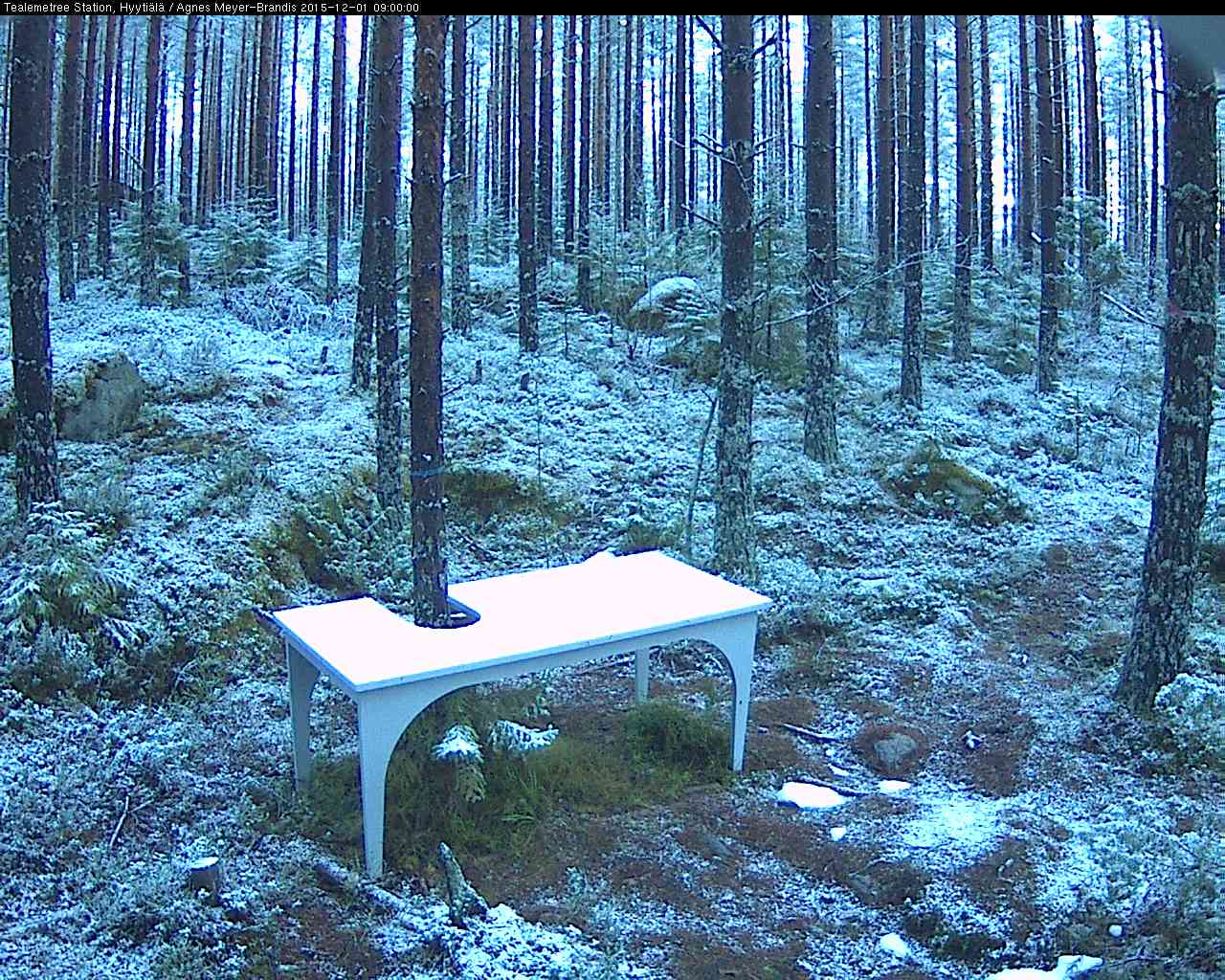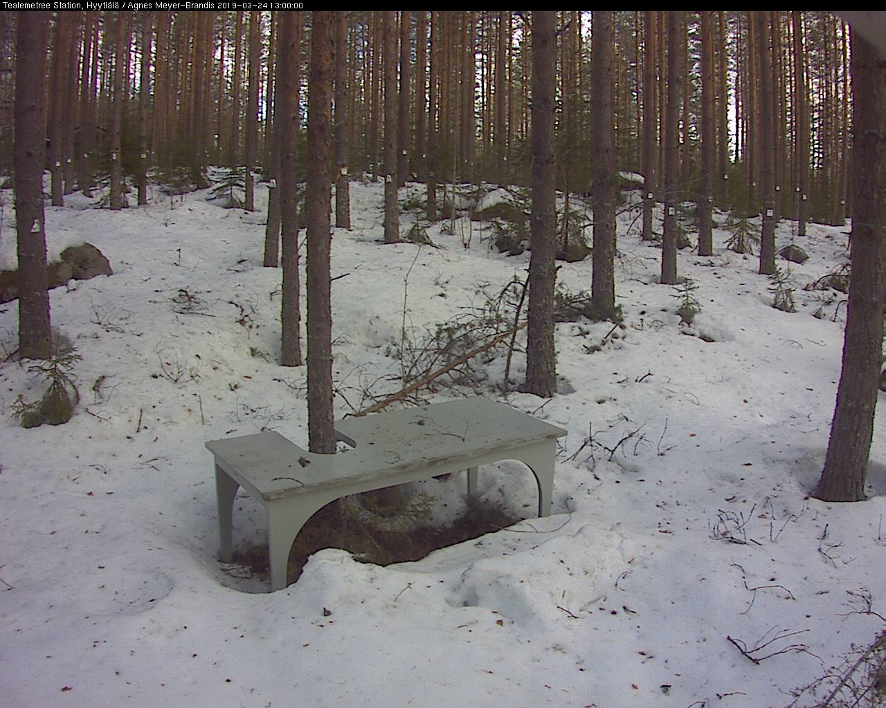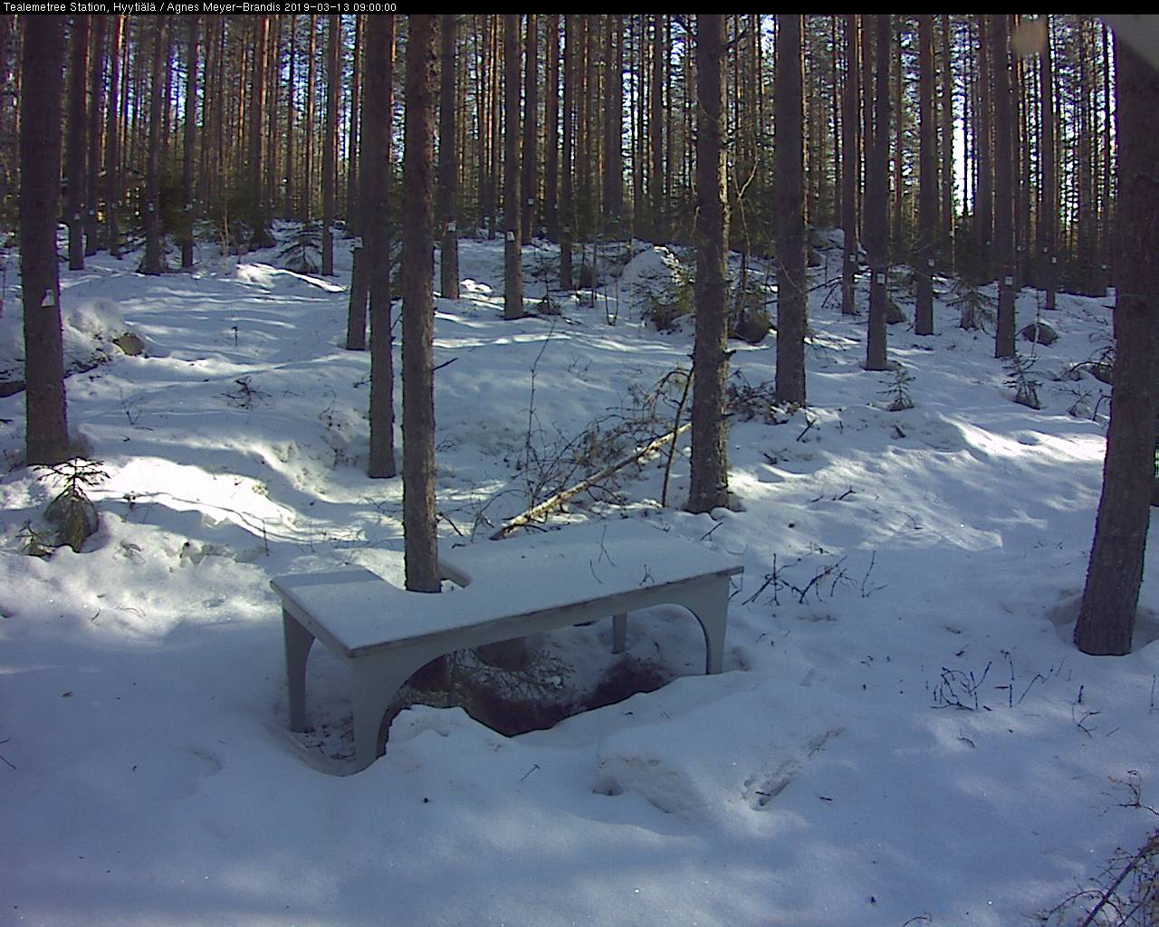 Agnes Meyer-Brandiksen työ Hyytiälässä alkoi tutustumalla aseman muihin tutkijoihin. Pystyäkseen tapaamaan ihmisiä metsässä, hän rakensi pöydän, josta muodostui kohtauspiste ja paikka teehetkille Agneksen ja puun kanssa.