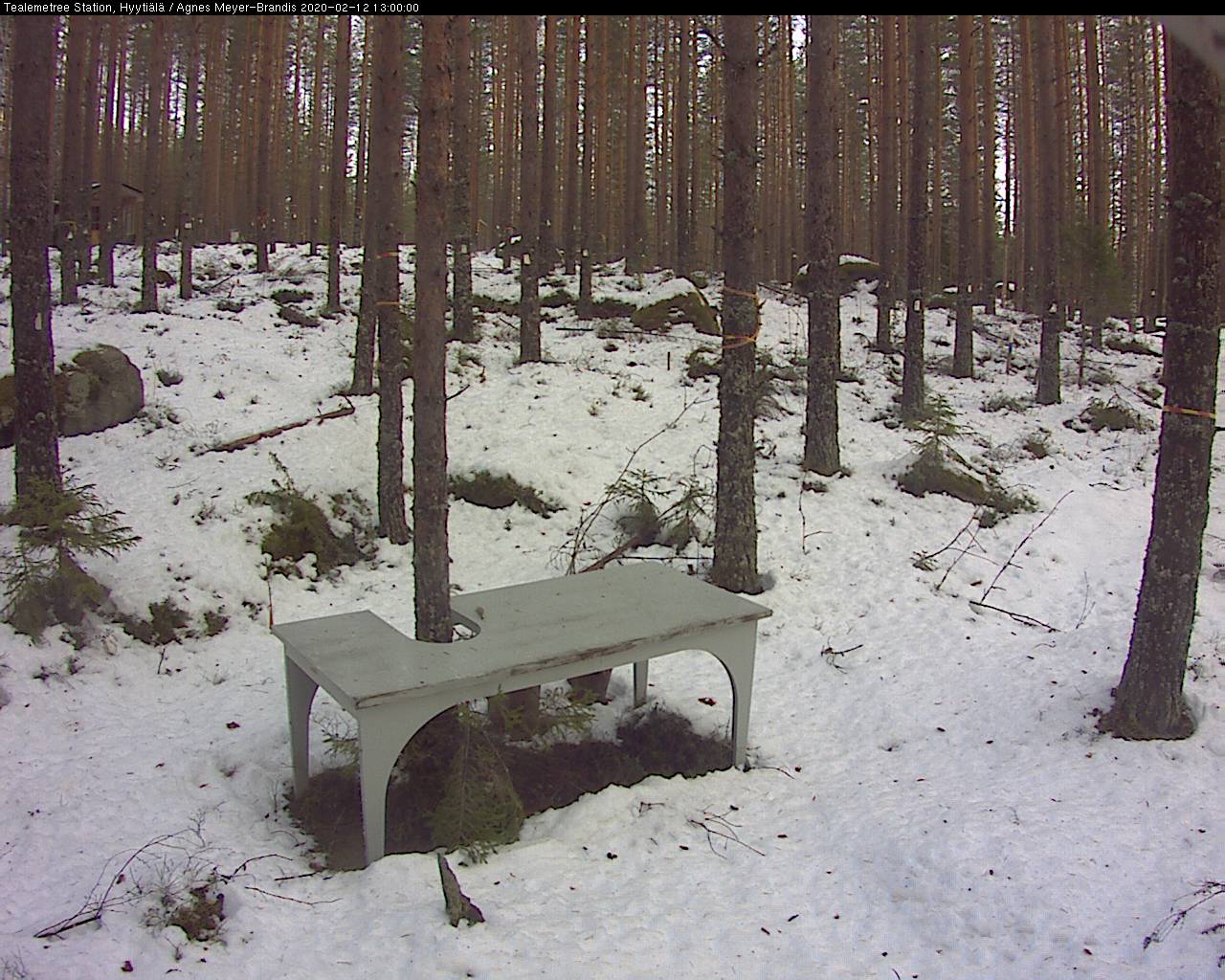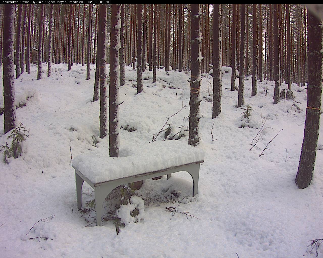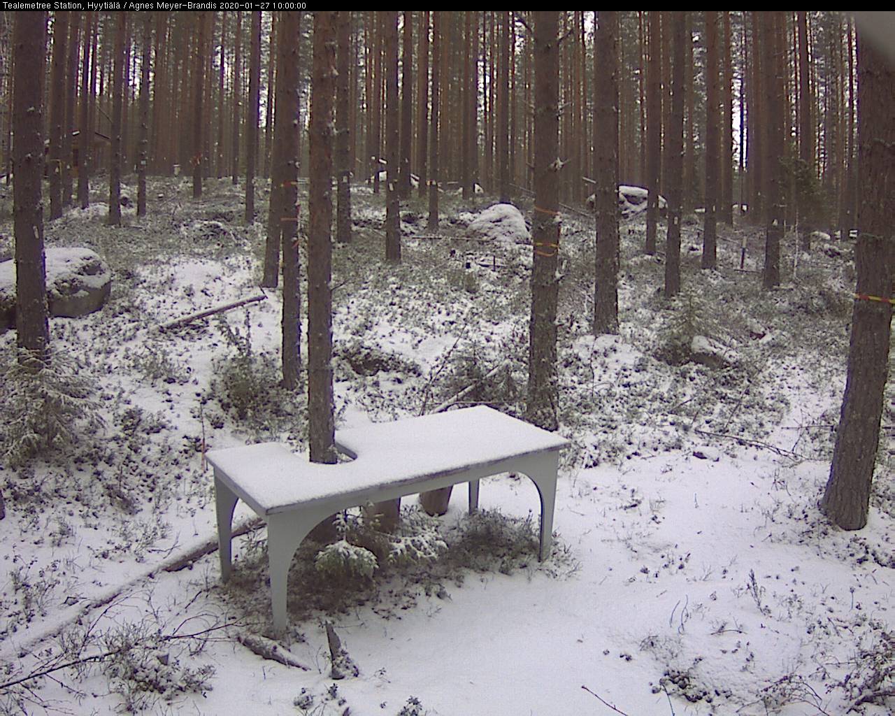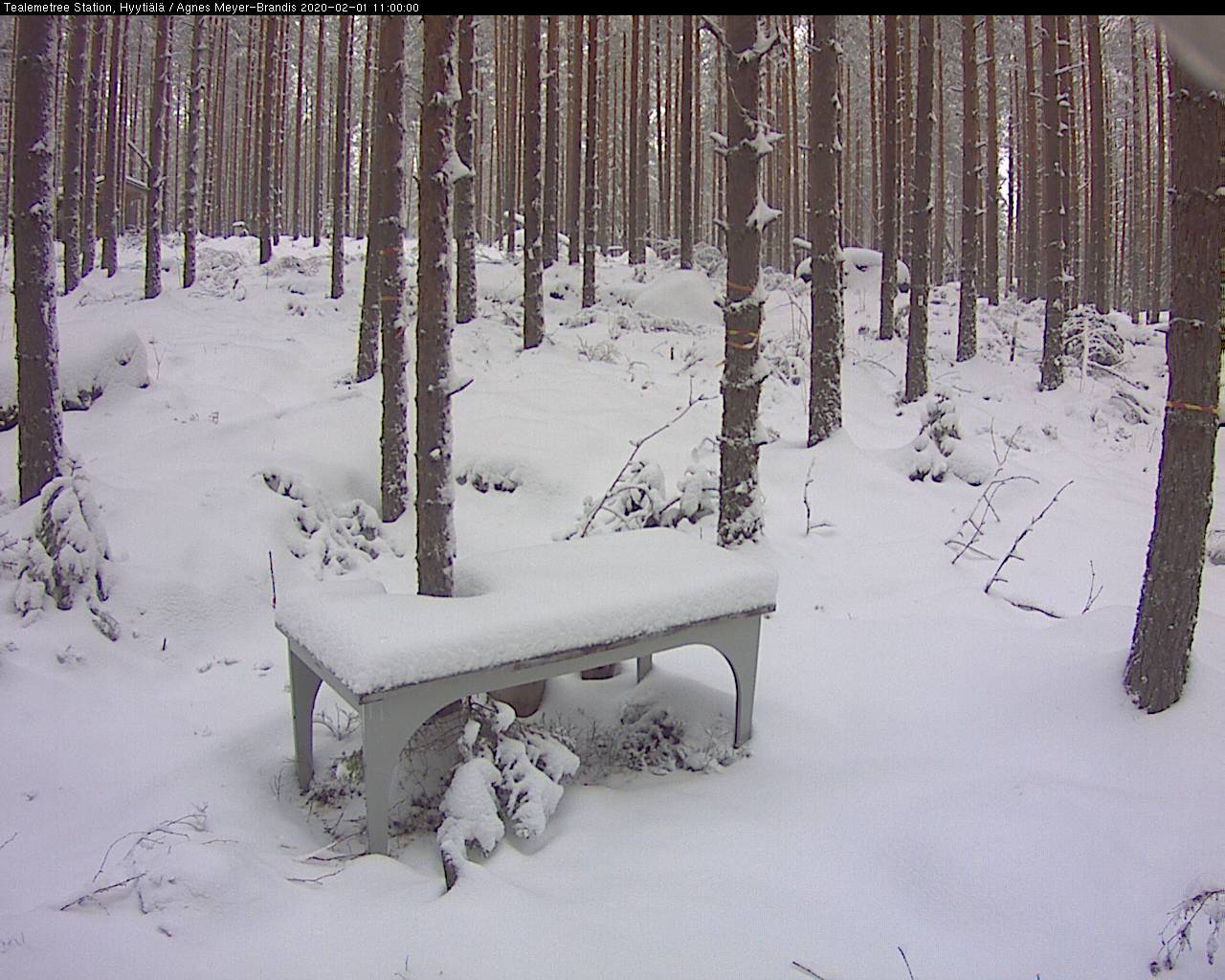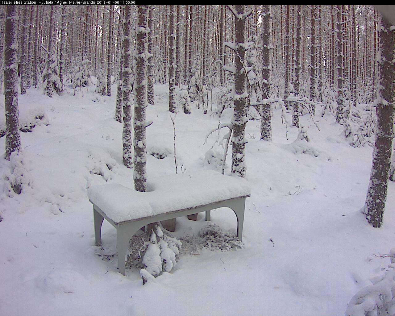 Agnes Meyer-Brandiksen työ Hyytiälässä alkoi tutustumalla aseman muihin tutkijoihin. Pystyäkseen tapaamaan ihmisiä metsässä, hän rakensi pöydän, josta muodostui kohtauspiste ja paikka teehetkille Agneksen ja puun kanssa.