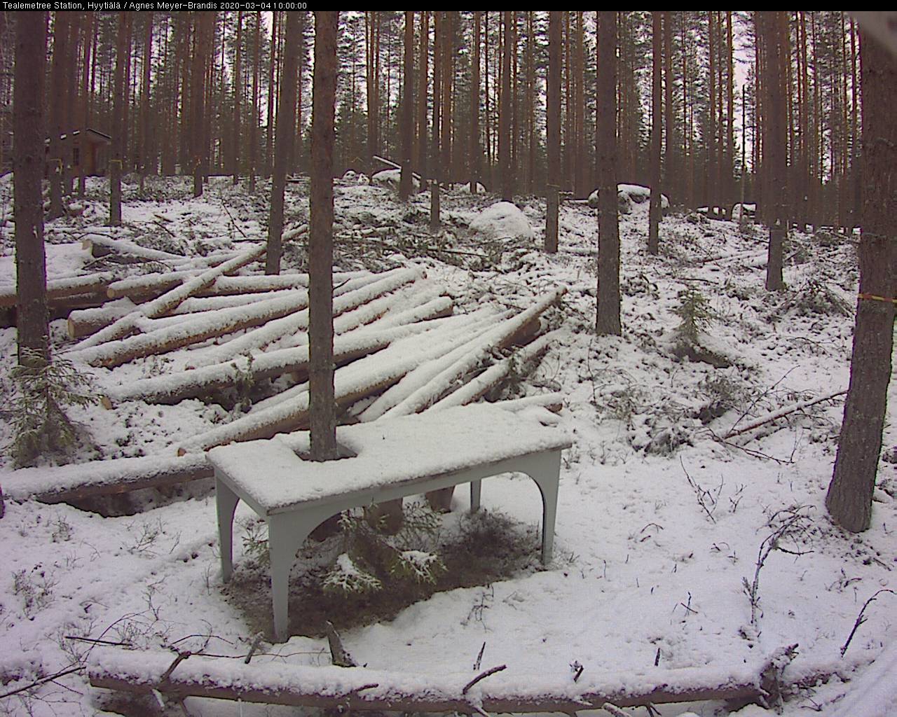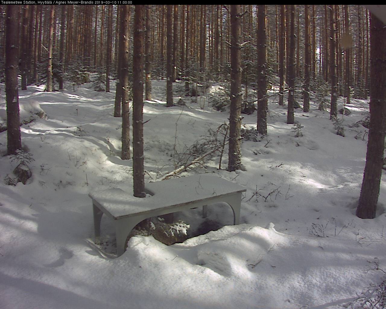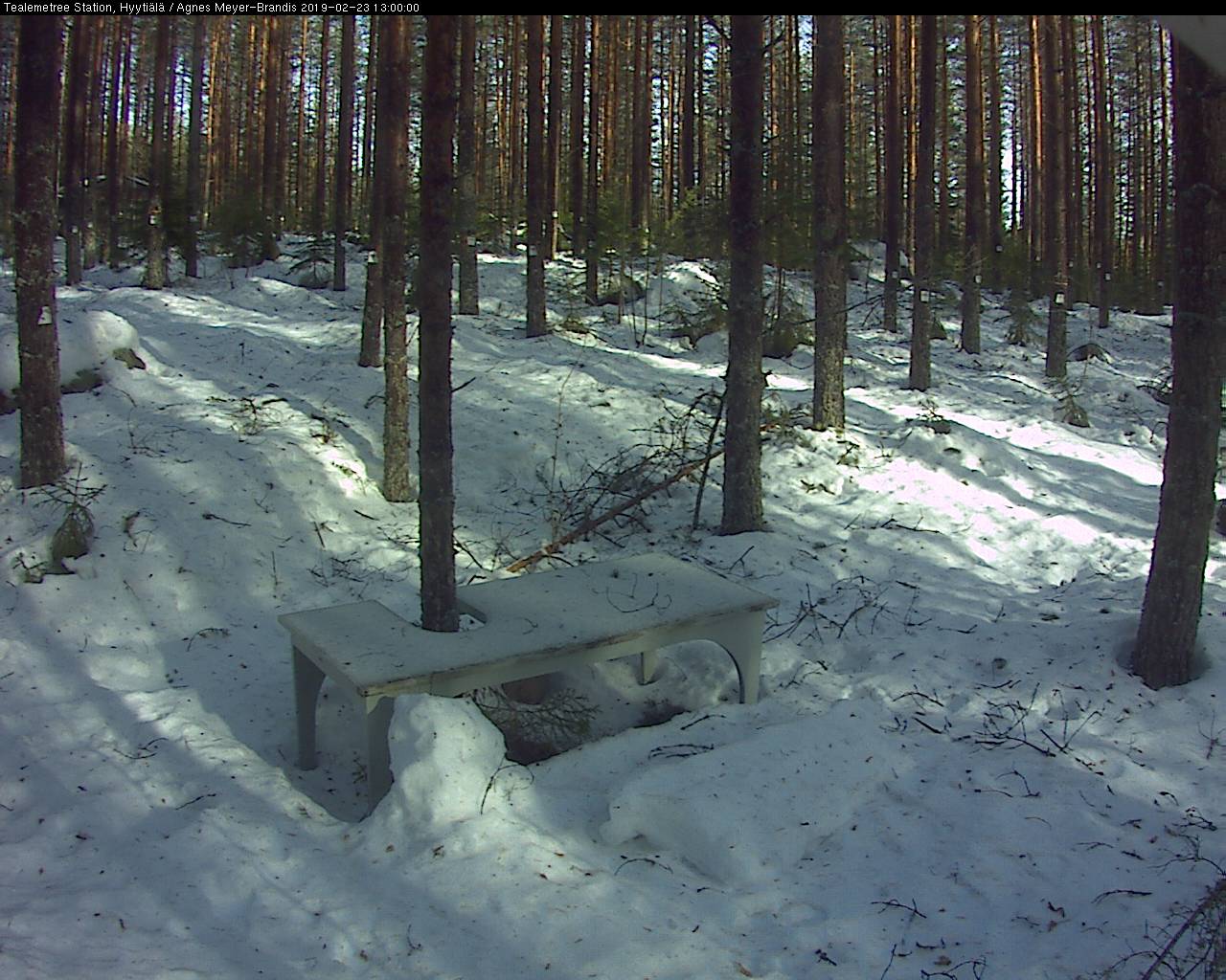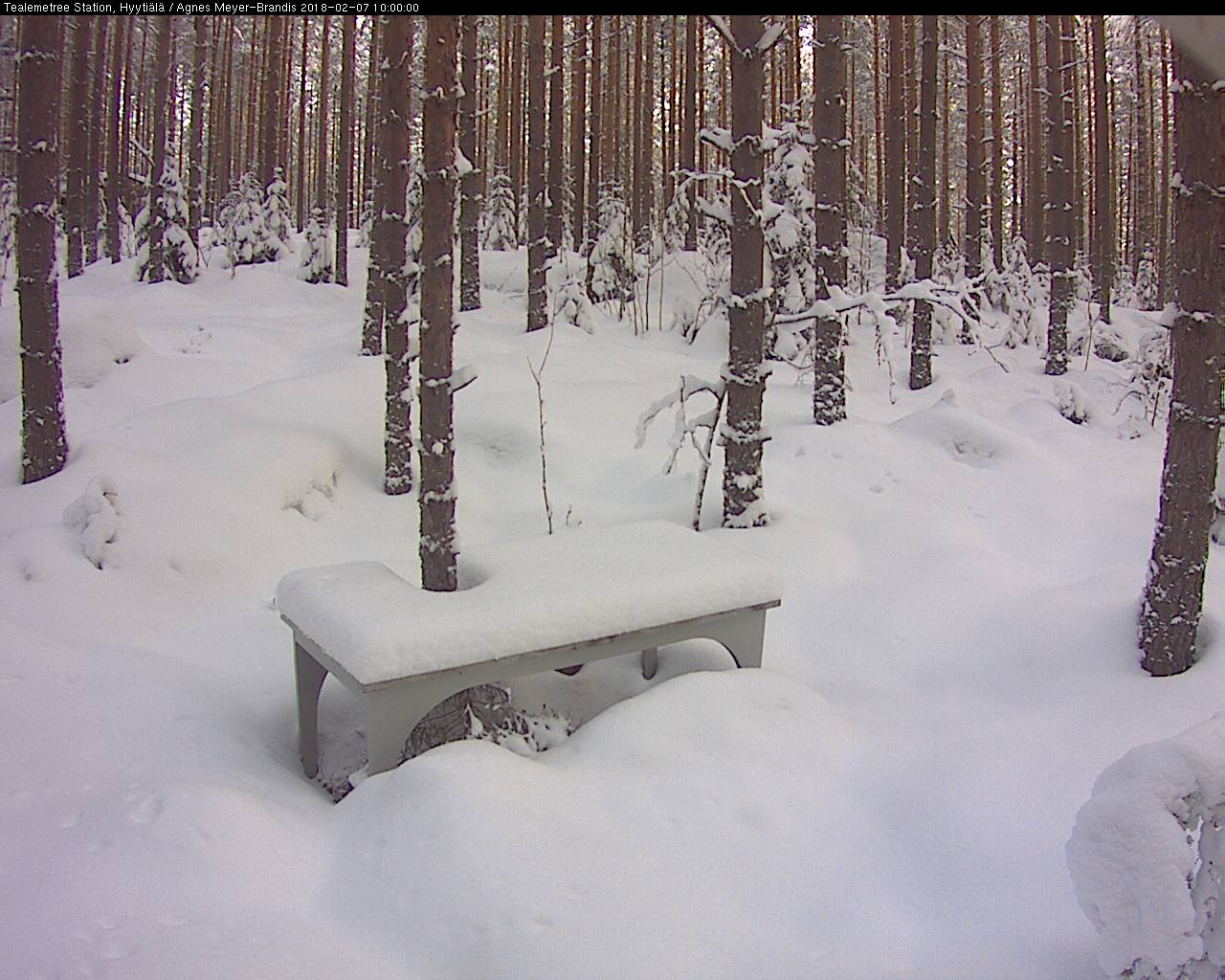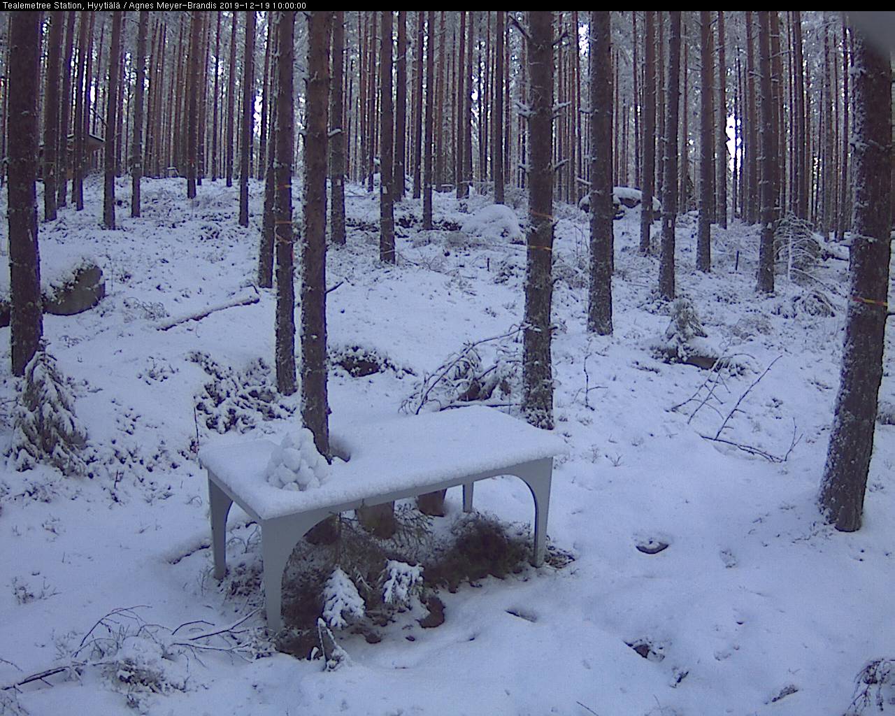 Agnes Meyer-Brandiksen työ Hyytiälässä alkoi tutustumalla aseman muihin tutkijoihin. Pystyäkseen tapaamaan ihmisiä metsässä, hän rakensi pöydän, josta muodostui kohtauspiste ja paikka teehetkille Agneksen ja puun kanssa.