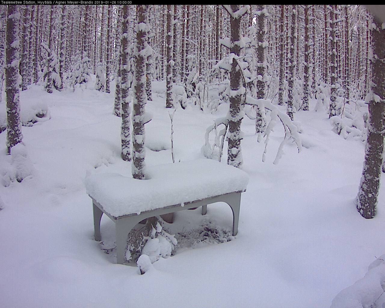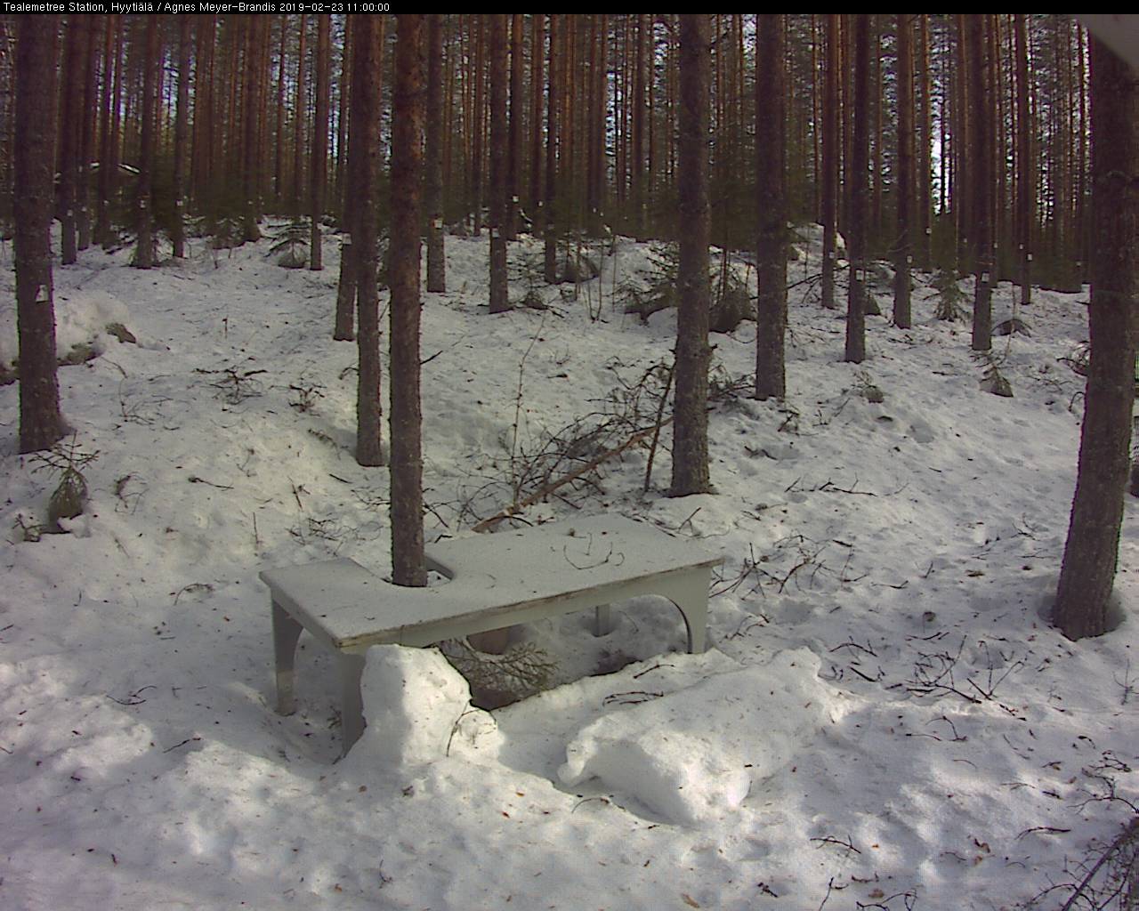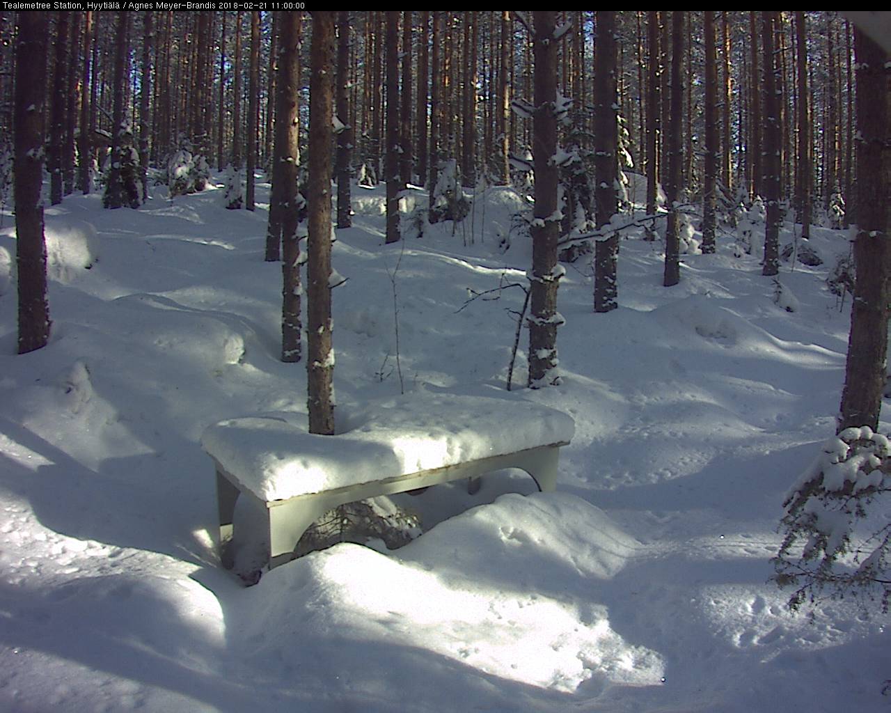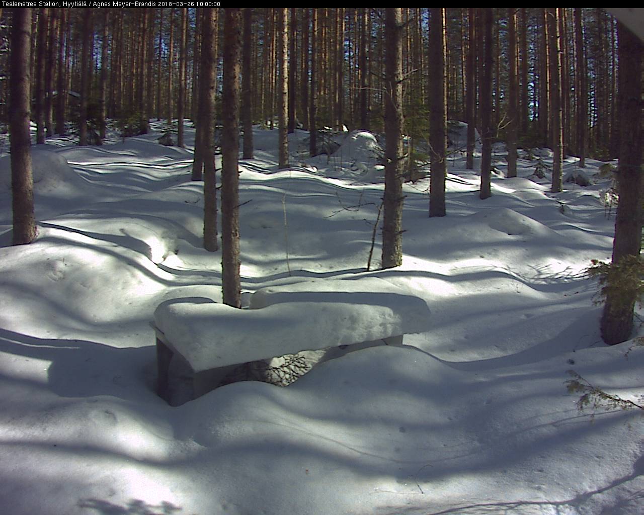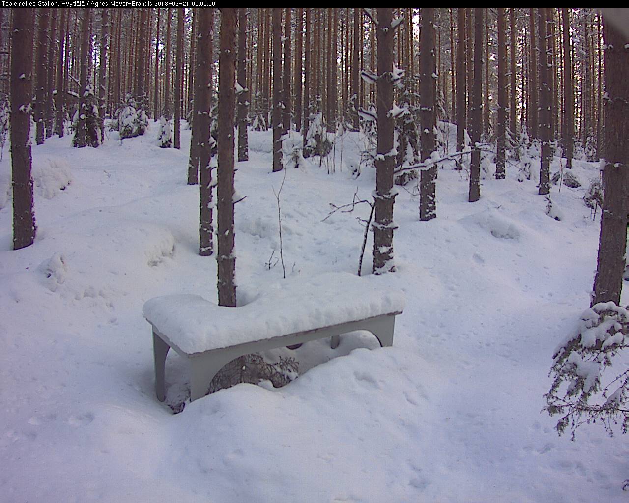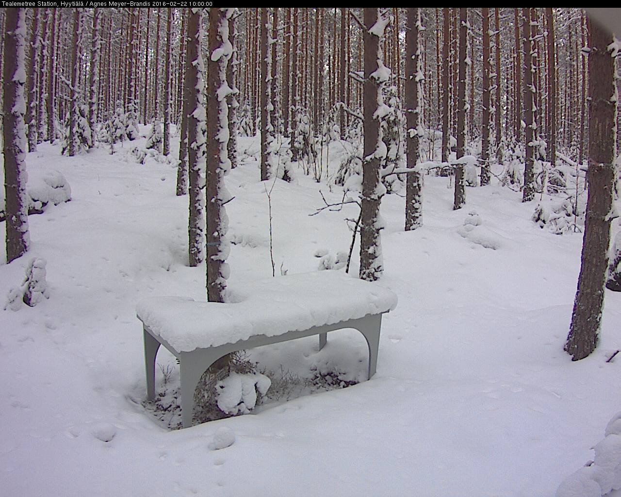 Agnes Meyer-Brandiksen työ Hyytiälässä alkoi tutustumalla aseman muihin tutkijoihin. Pystyäkseen tapaamaan ihmisiä metsässä, hän rakensi pöydän, josta muodostui kohtauspiste ja paikka teehetkille Agneksen ja puun kanssa.