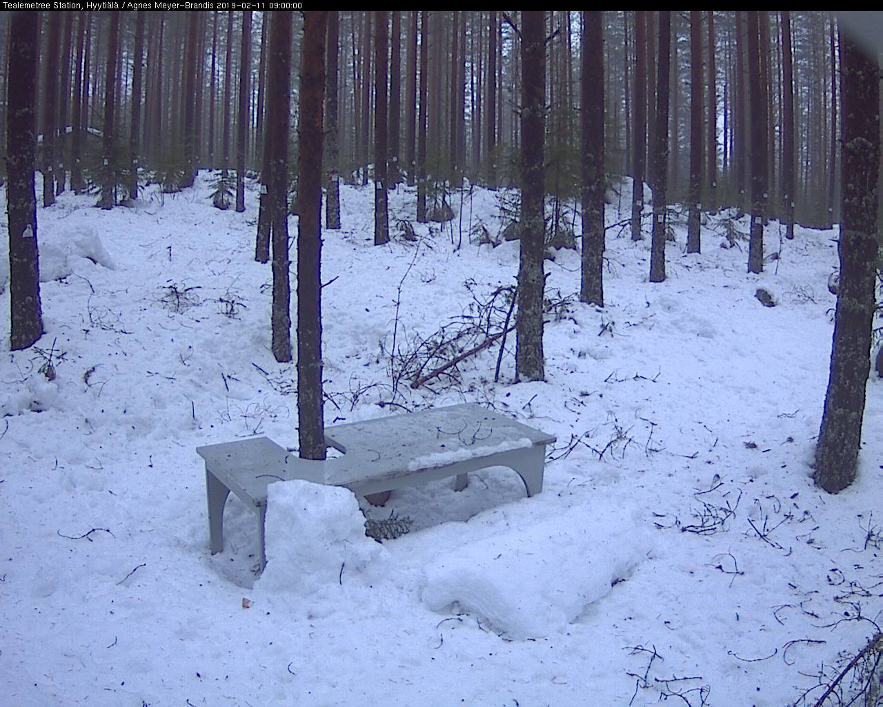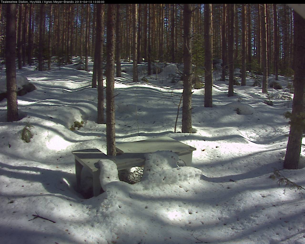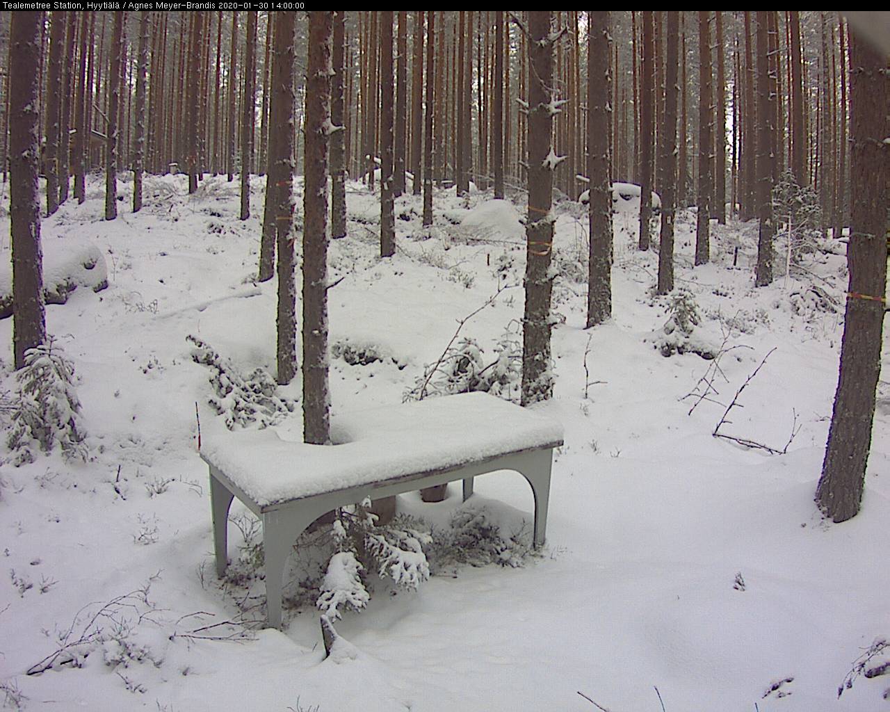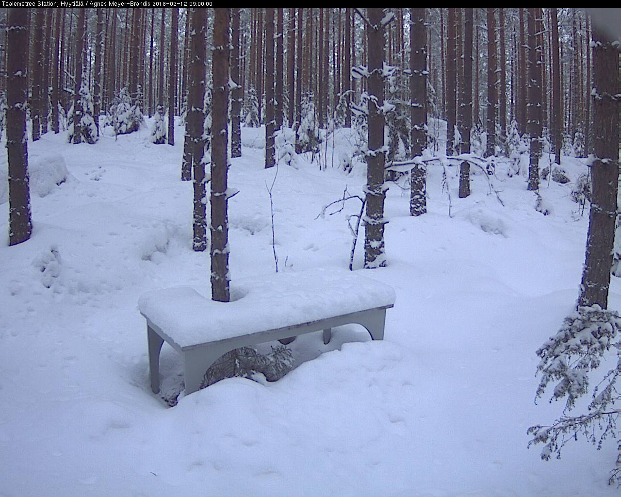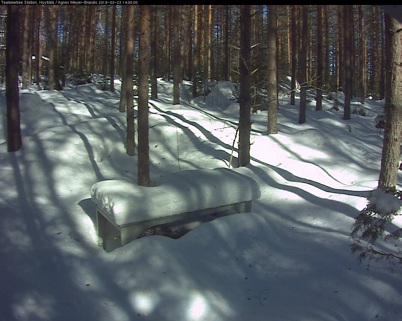 Agnes Meyer-Brandiksen työ Hyytiälässä alkoi tutustumalla aseman muihin tutkijoihin. Pystyäkseen tapaamaan ihmisiä metsässä, hän rakensi pöydän, josta muodostui kohtauspiste ja paikka teehetkille Agneksen ja puun kanssa.