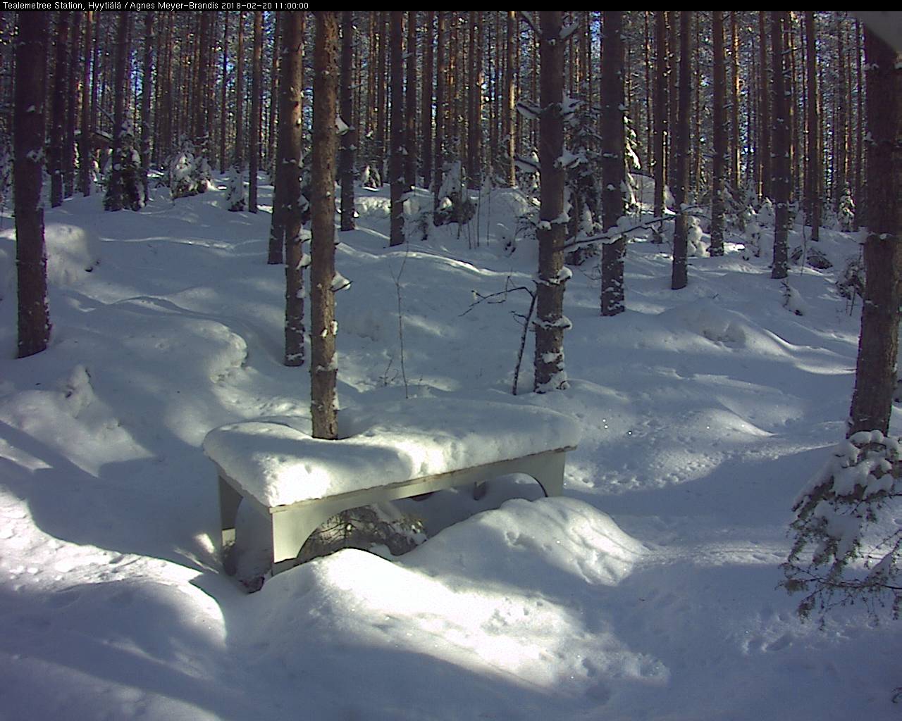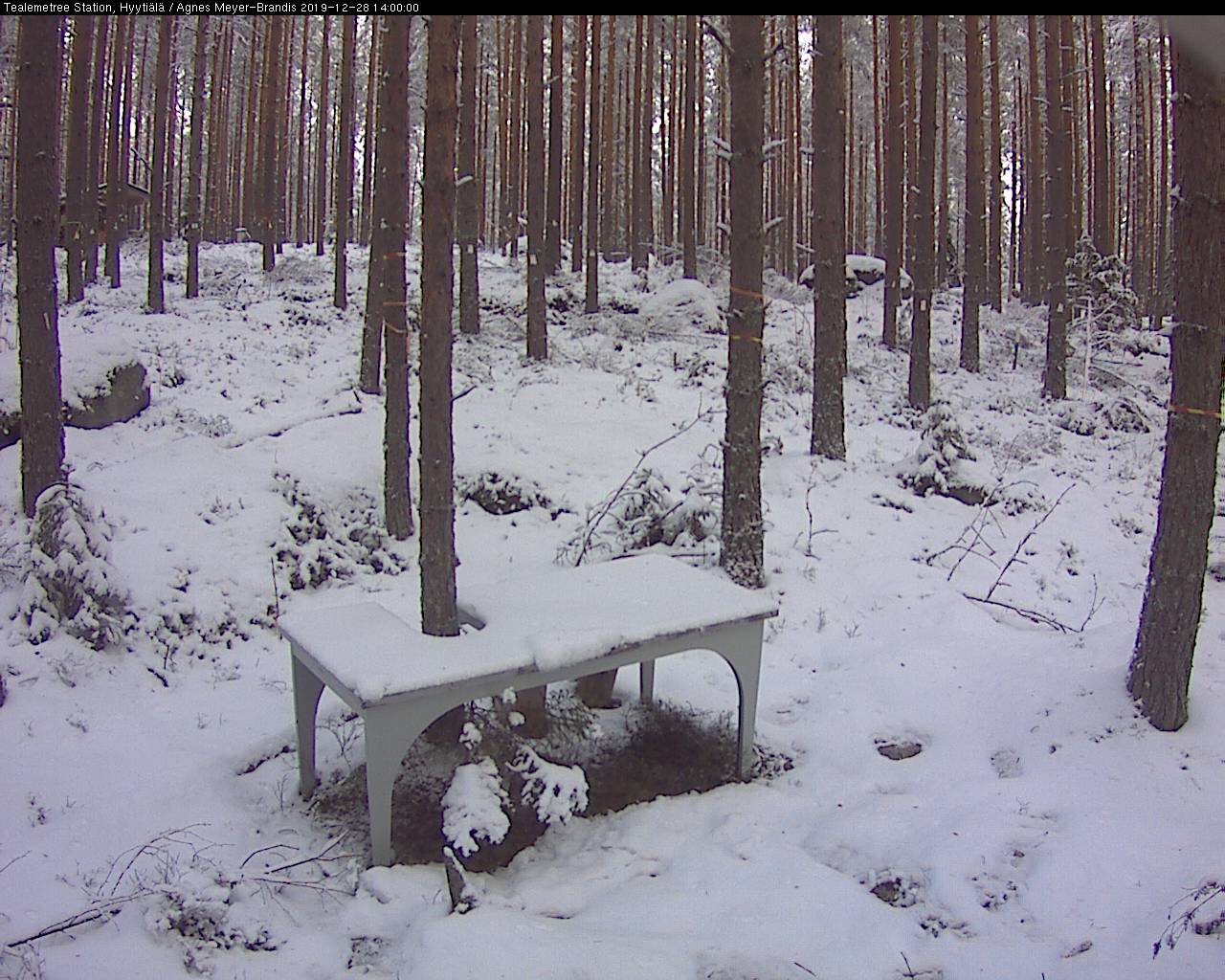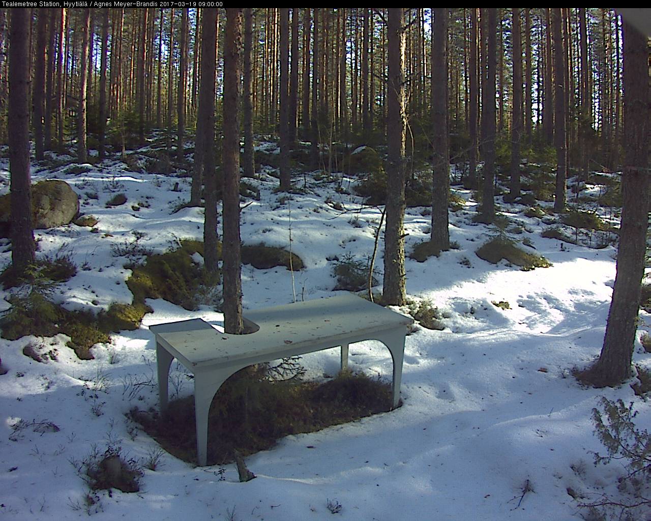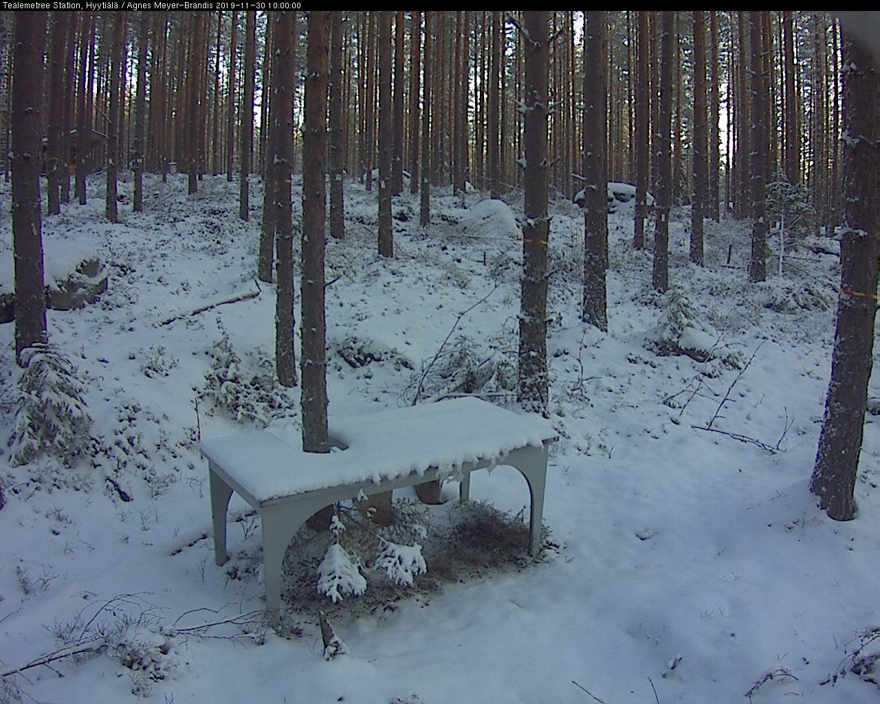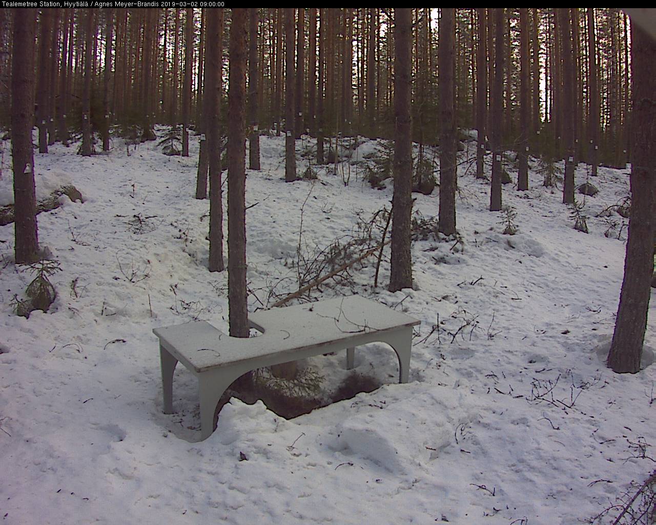 Agnes Meyer-Brandiksen työ Hyytiälässä alkoi tutustumalla aseman muihin tutkijoihin. Pystyäkseen tapaamaan ihmisiä metsässä, hän rakensi pöydän, josta muodostui kohtauspiste ja paikka teehetkille Agneksen ja puun kanssa.