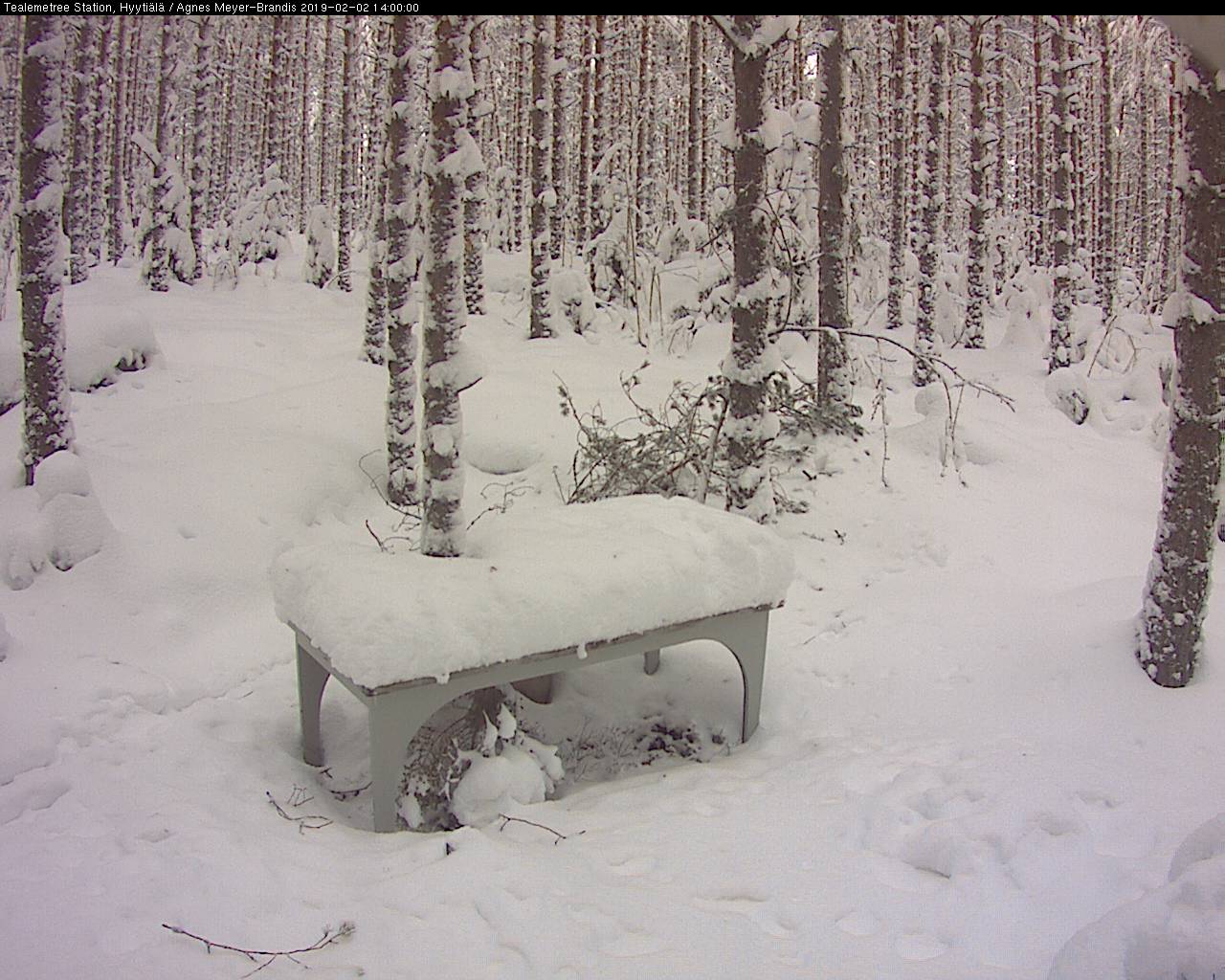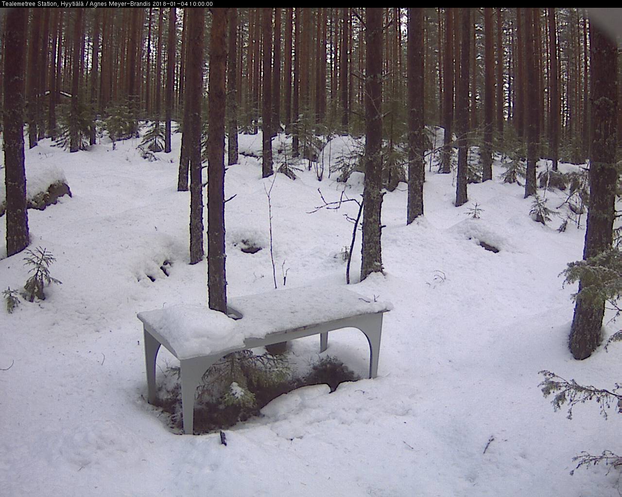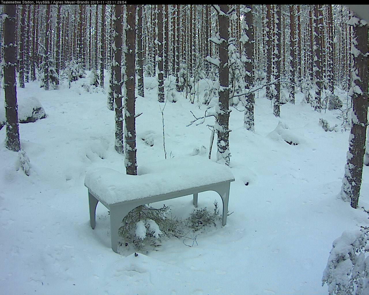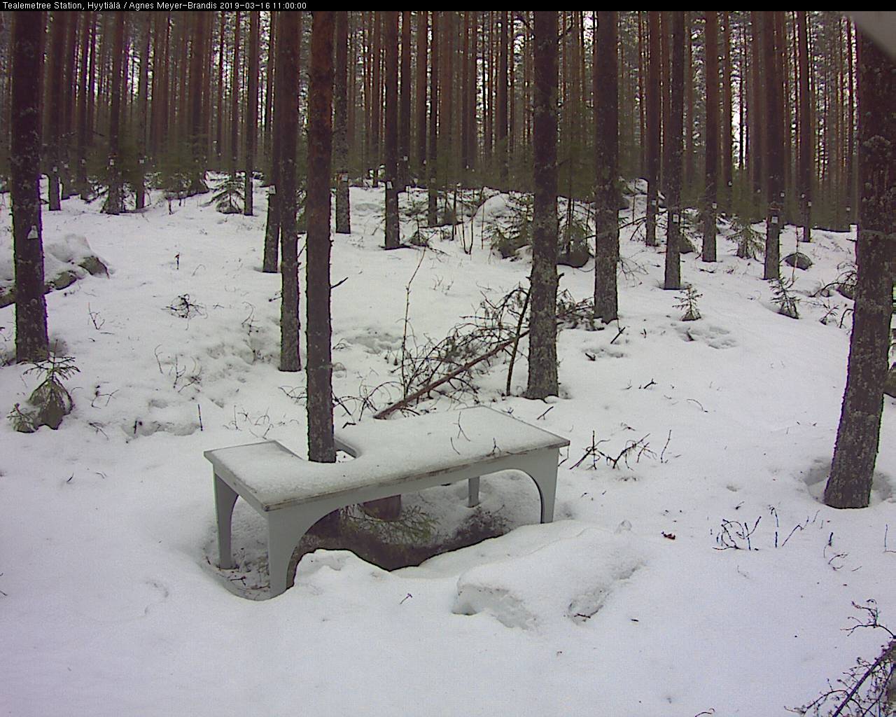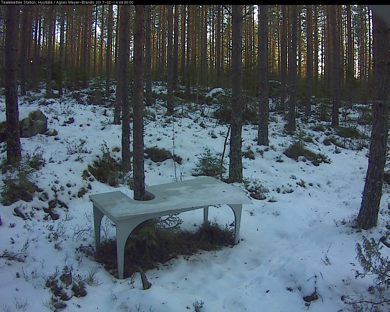 Agnes Meyer-Brandiksen työ Hyytiälässä alkoi tutustumalla aseman muihin tutkijoihin. Pystyäkseen tapaamaan ihmisiä metsässä, hän rakensi pöydän, josta muodostui kohtauspiste ja paikka teehetkille Agneksen ja puun kanssa.
