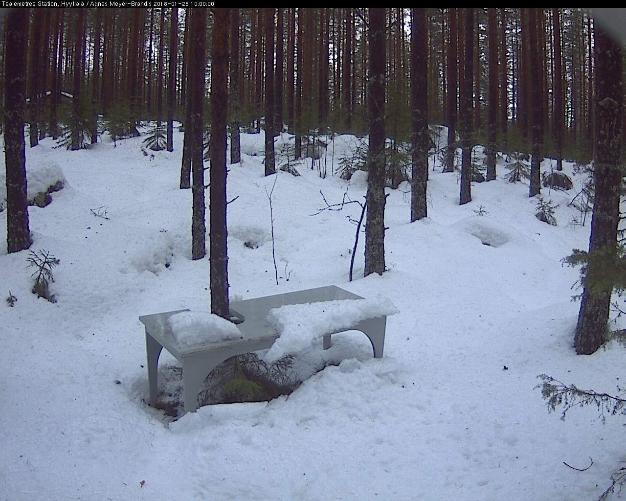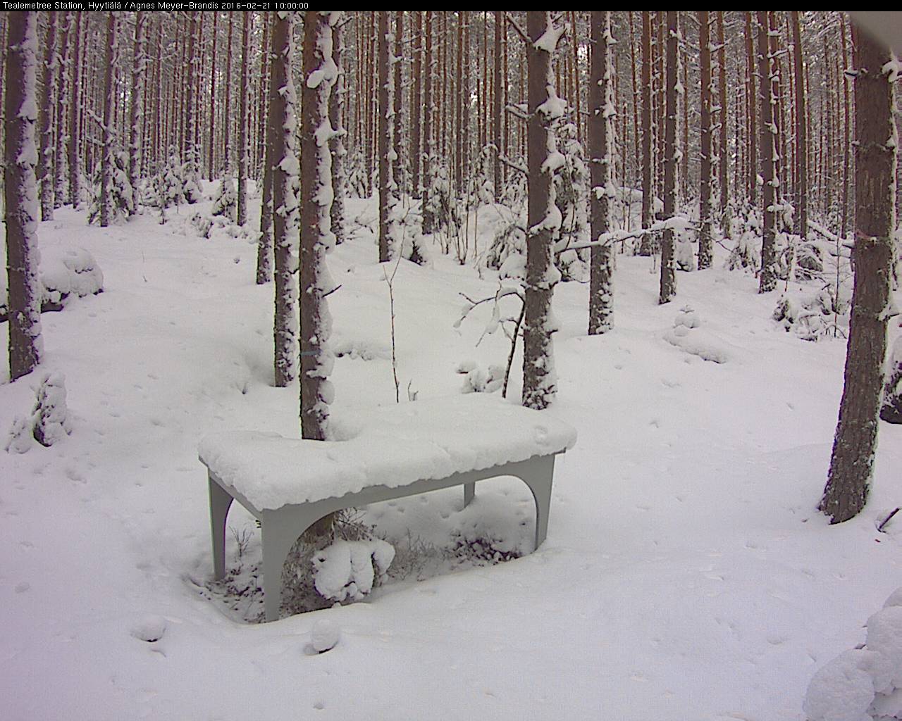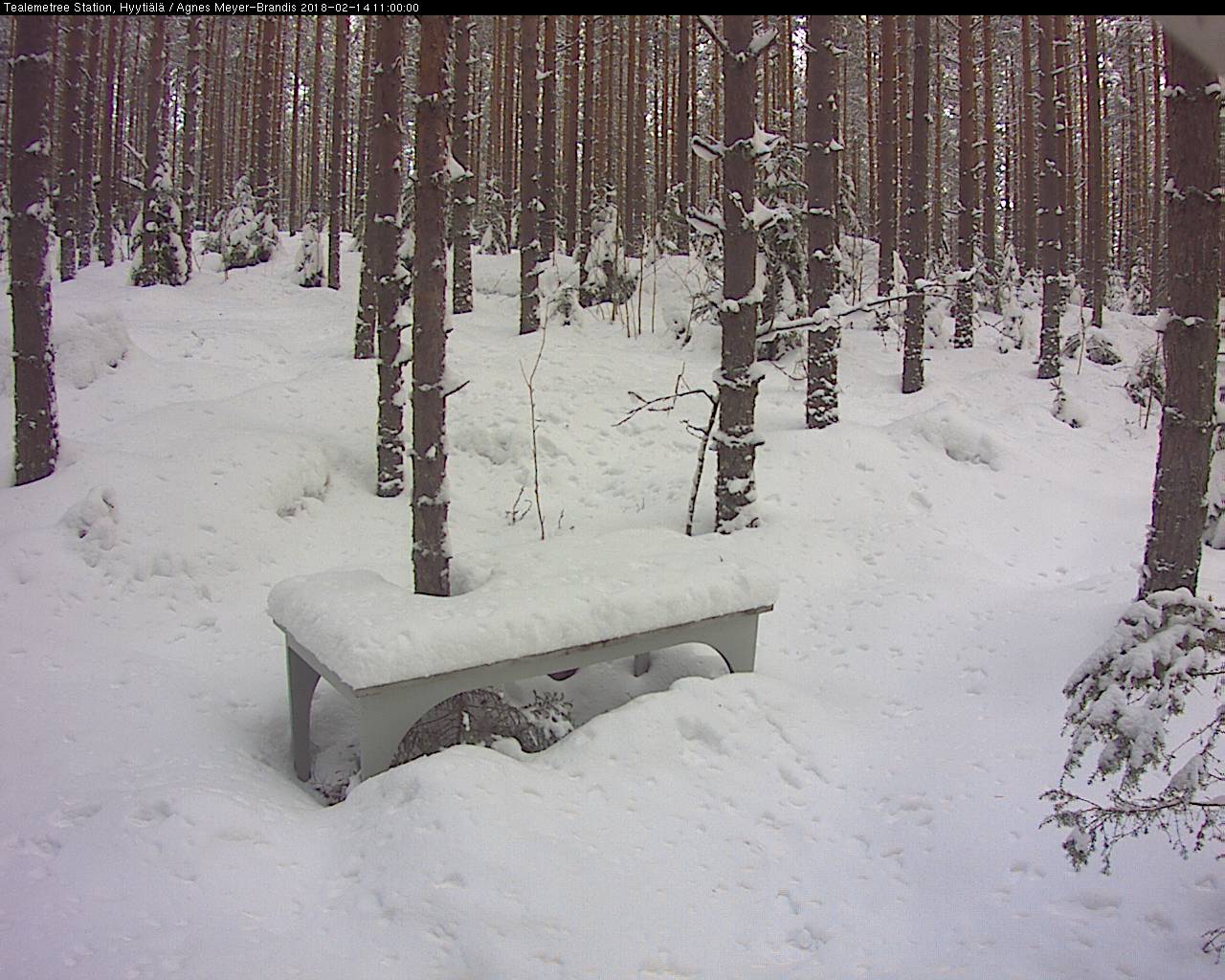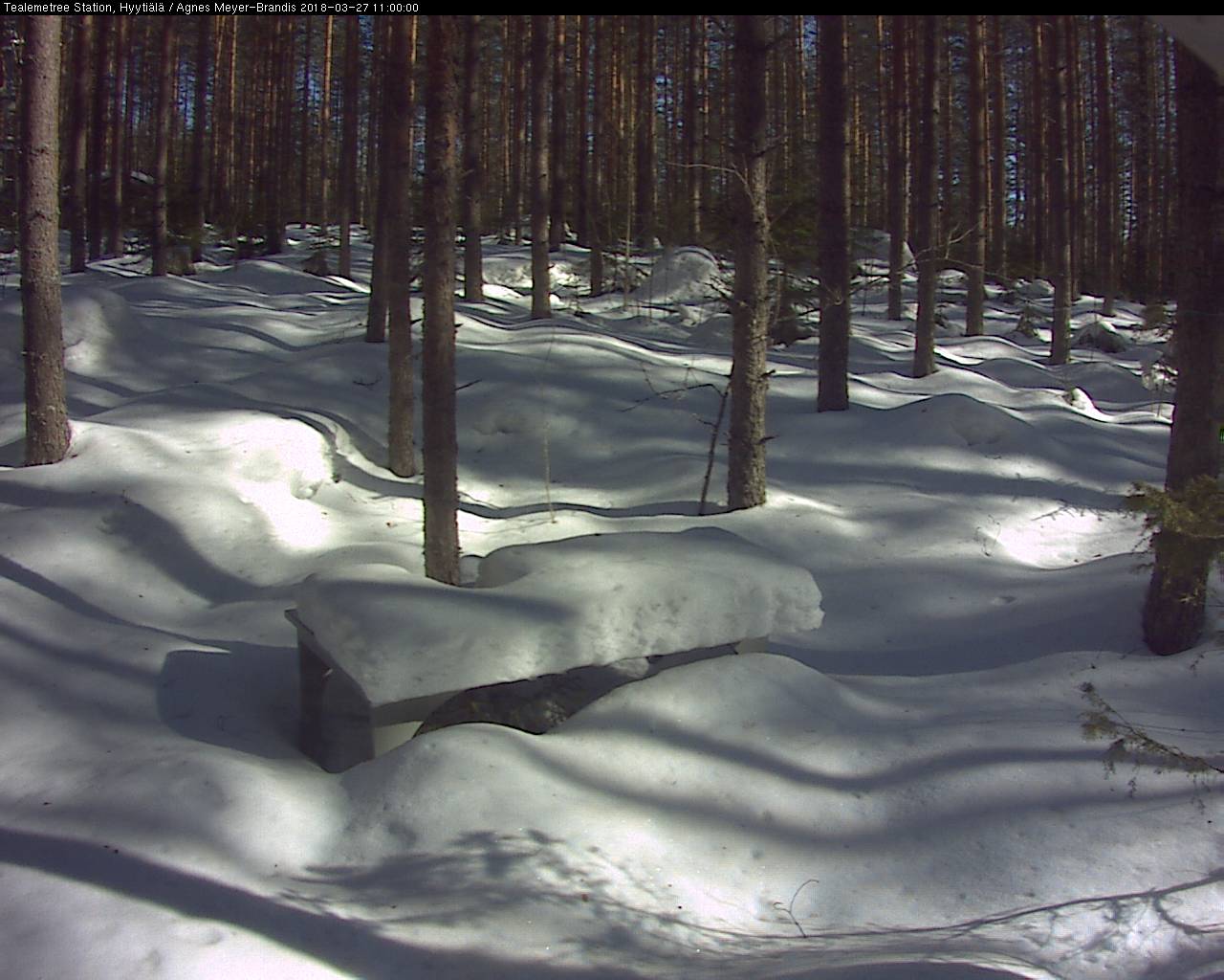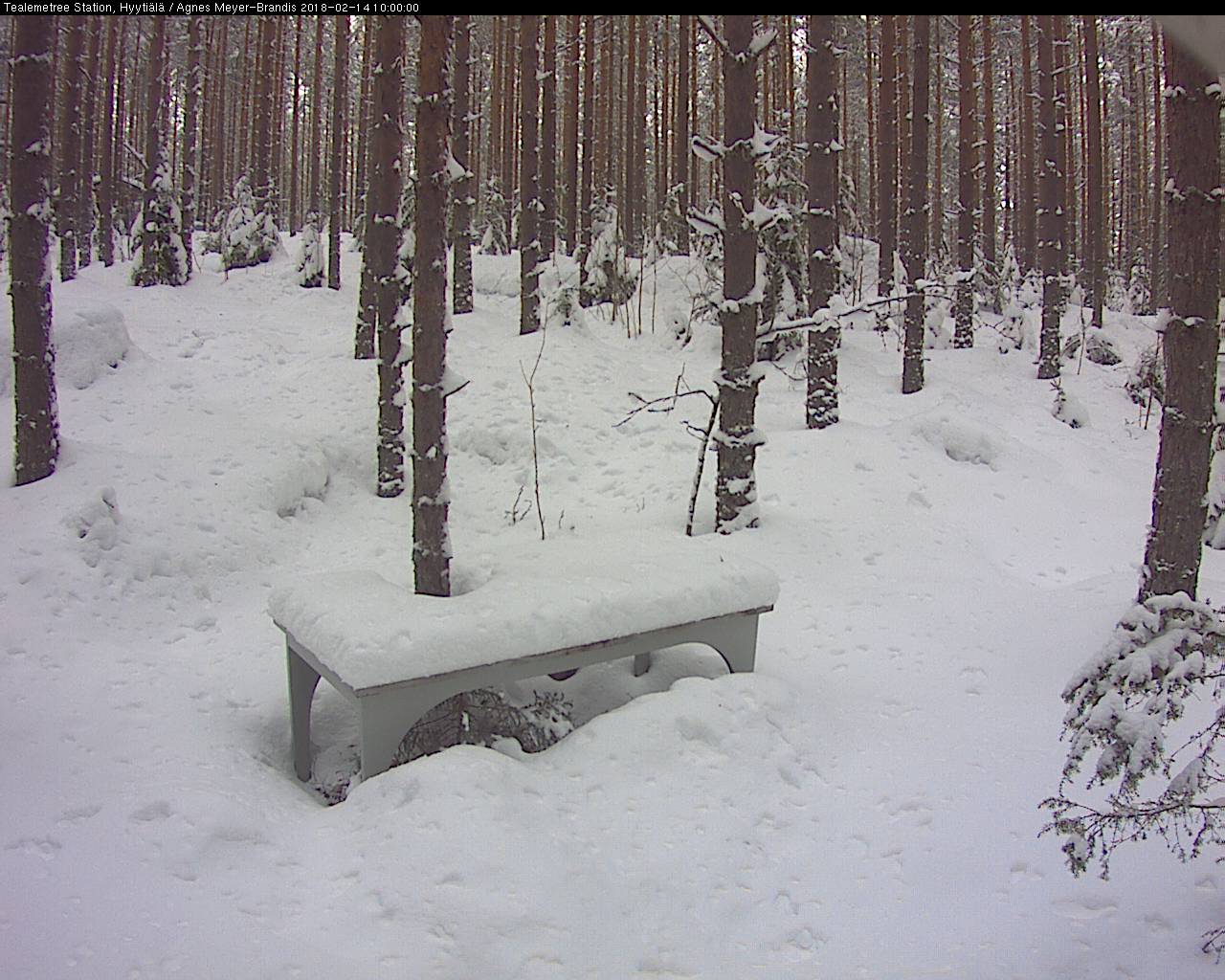 Agnes Meyer-Brandiksen työ Hyytiälässä alkoi tutustumalla aseman muihin tutkijoihin. Pystyäkseen tapaamaan ihmisiä metsässä, hän rakensi pöydän, josta muodostui kohtauspiste ja paikka teehetkille Agneksen ja puun kanssa.