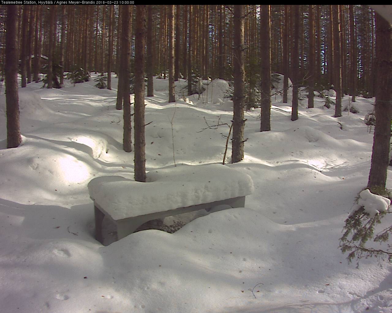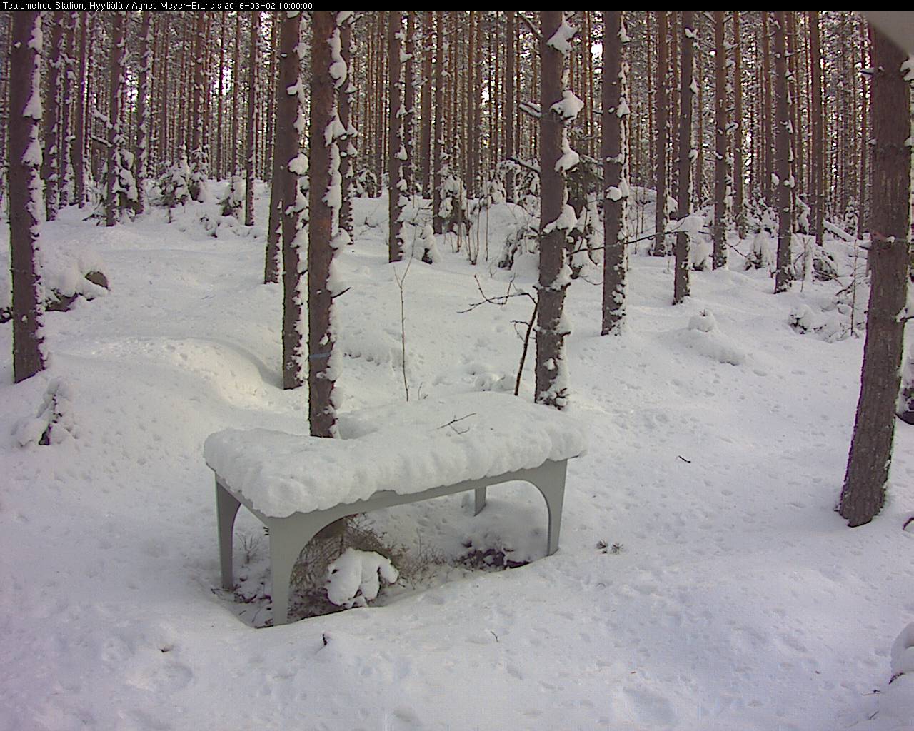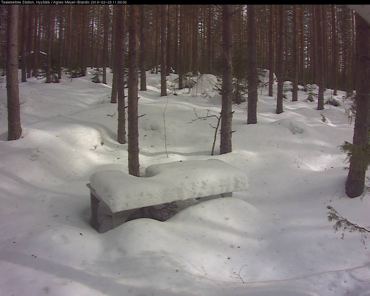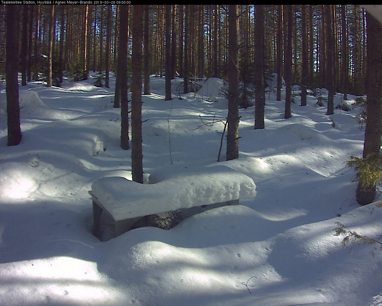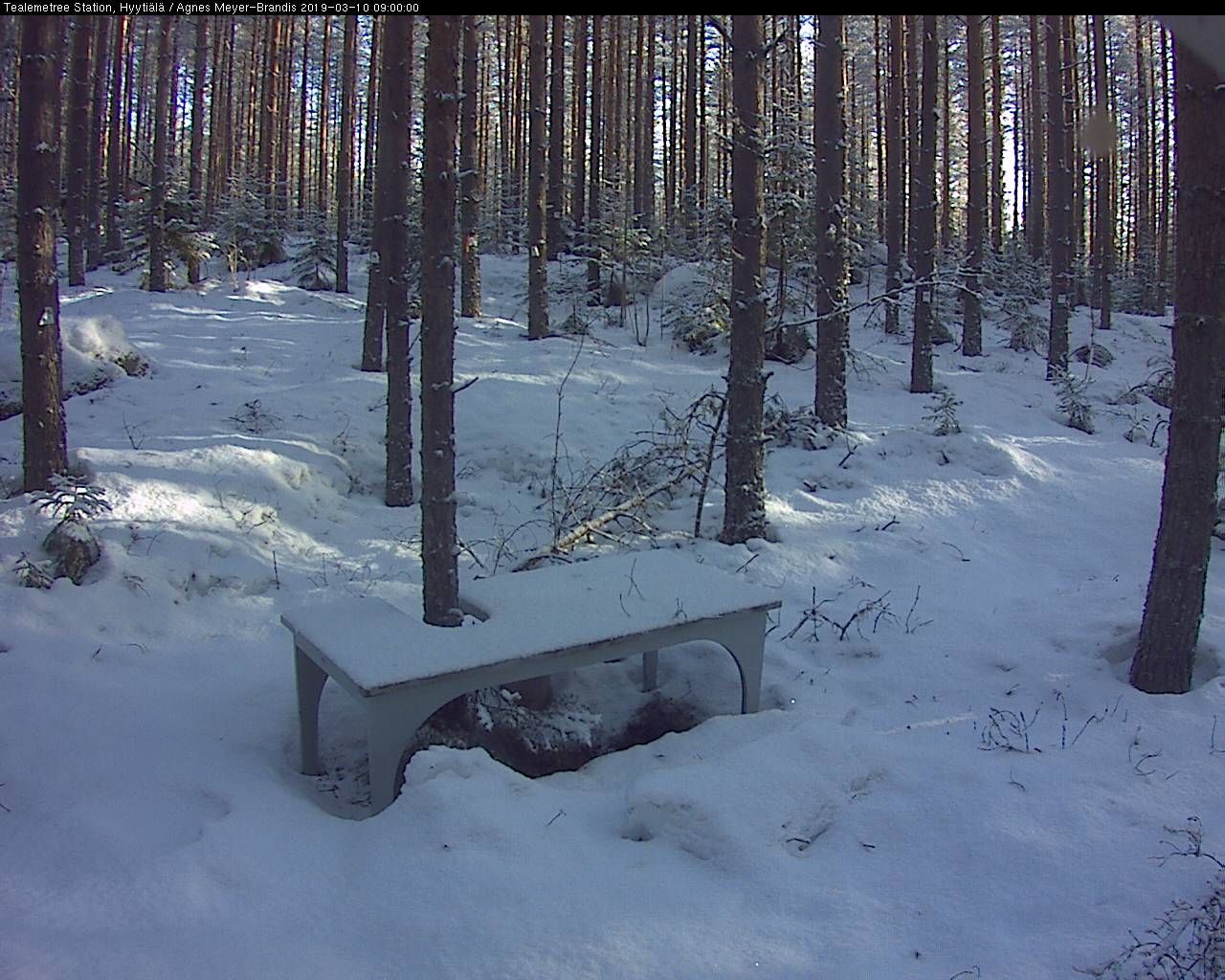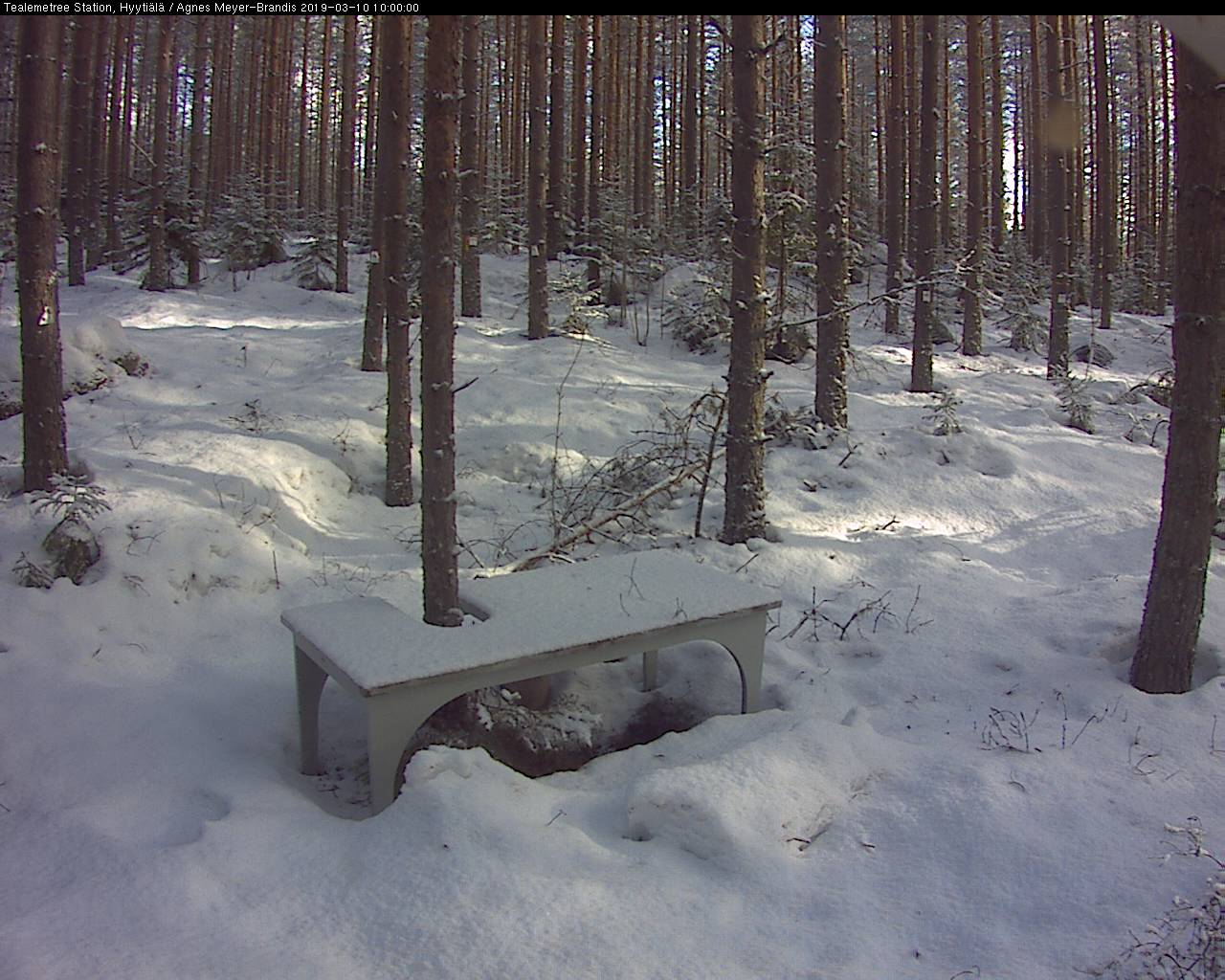 Agnes Meyer-Brandiksen työ Hyytiälässä alkoi tutustumalla aseman muihin tutkijoihin. Pystyäkseen tapaamaan ihmisiä metsässä, hän rakensi pöydän, josta muodostui kohtauspiste ja paikka teehetkille Agneksen ja puun kanssa.