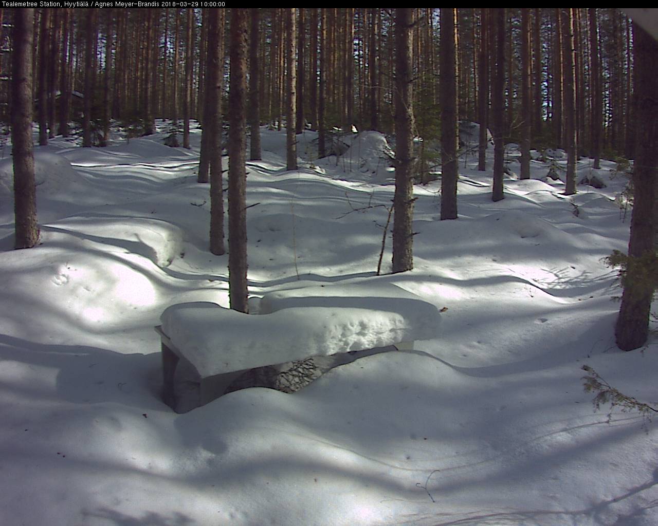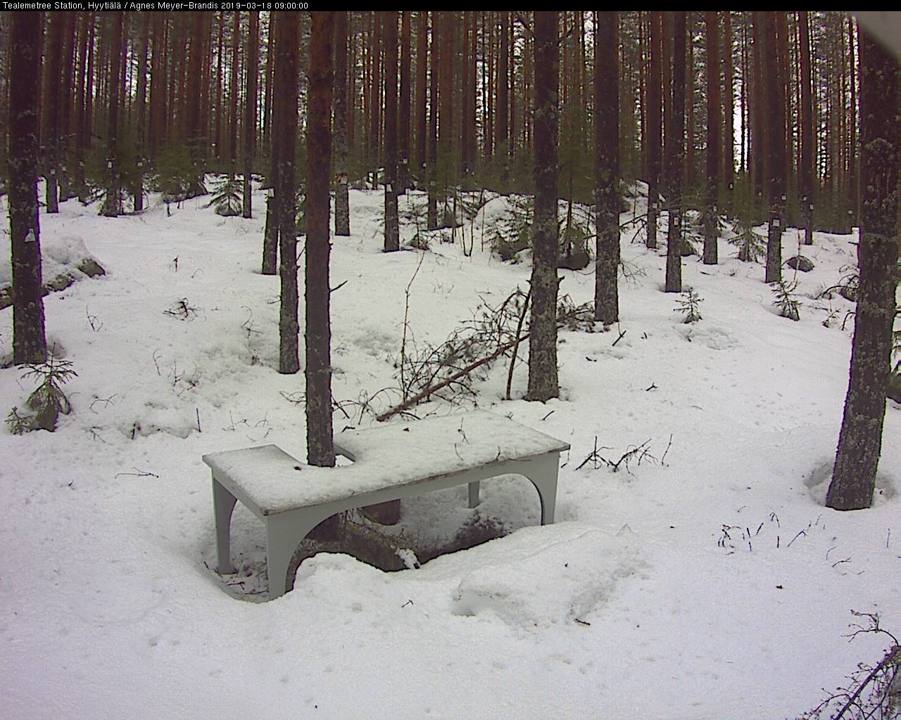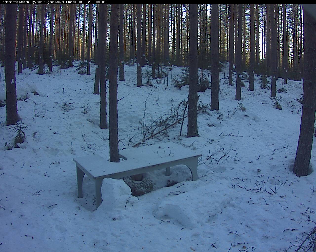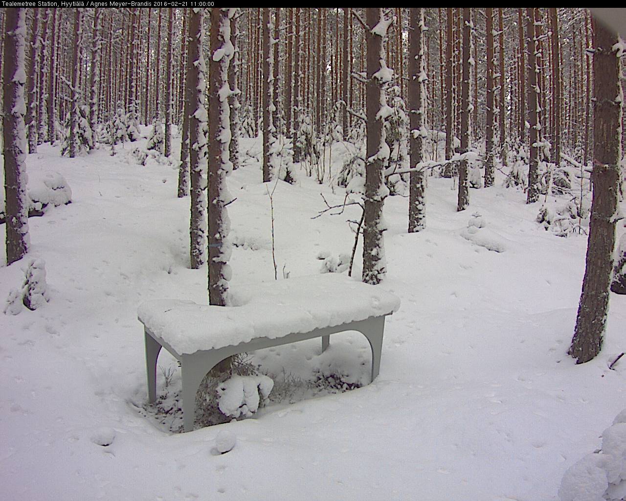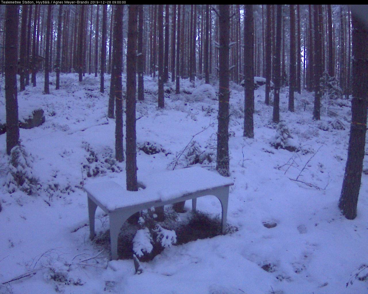 Agnes Meyer-Brandiksen työ Hyytiälässä alkoi tutustumalla aseman muihin tutkijoihin. Pystyäkseen tapaamaan ihmisiä metsässä, hän rakensi pöydän, josta muodostui kohtauspiste ja paikka teehetkille Agneksen ja puun kanssa.