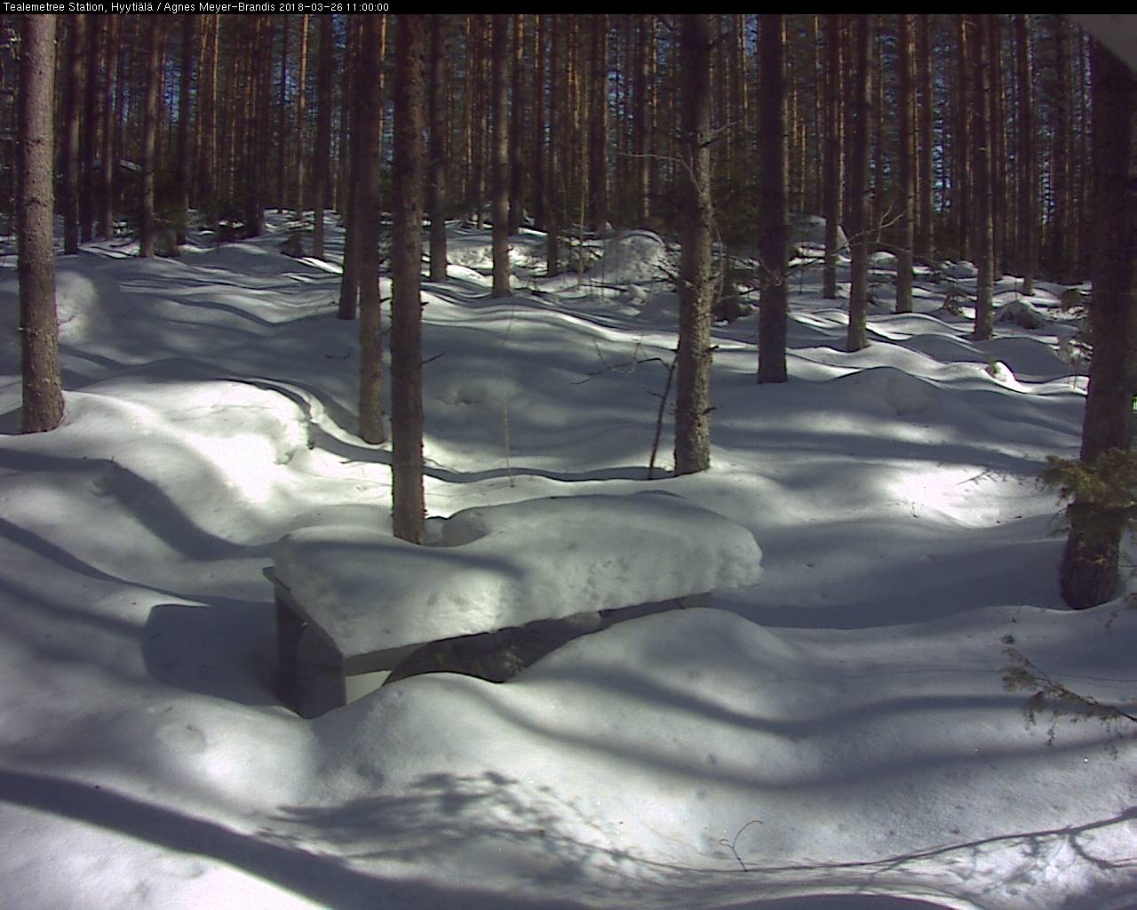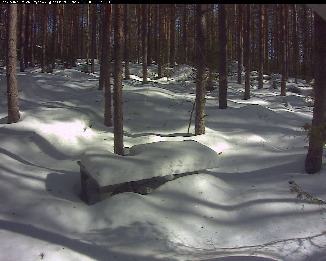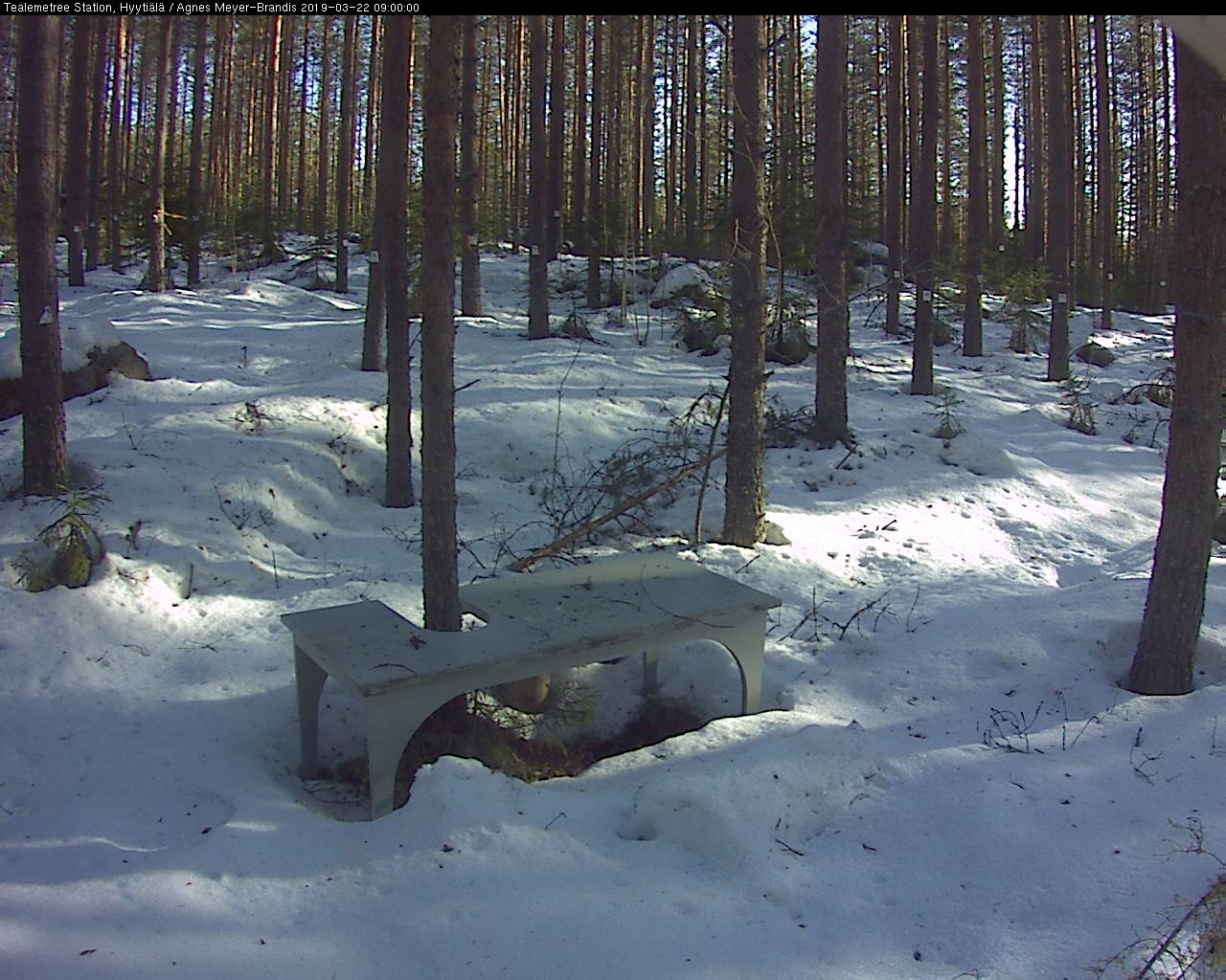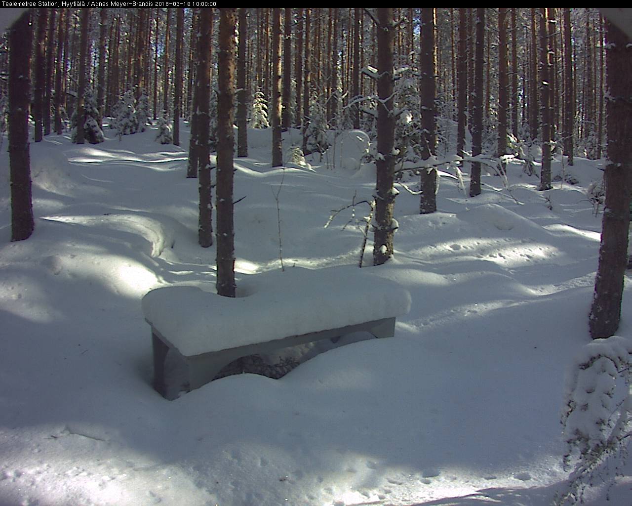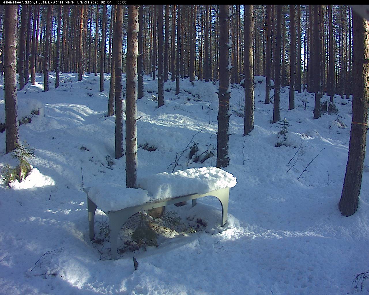 Agnes Meyer-Brandiksen työ Hyytiälässä alkoi tutustumalla aseman muihin tutkijoihin. Pystyäkseen tapaamaan ihmisiä metsässä, hän rakensi pöydän, josta muodostui kohtauspiste ja paikka teehetkille Agneksen ja puun kanssa.